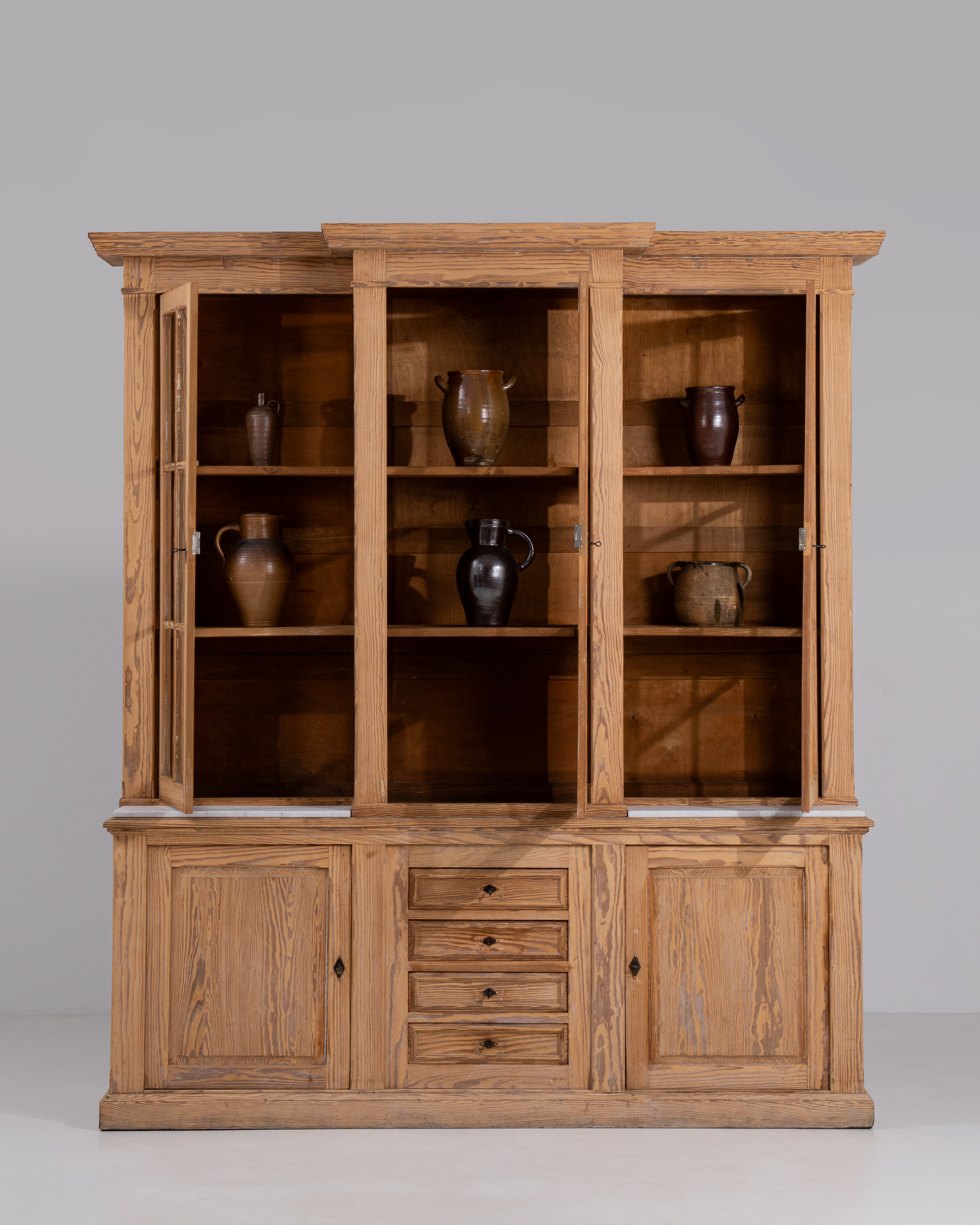 Pitch Pine Library Cabinet With Mesh Screen Doors