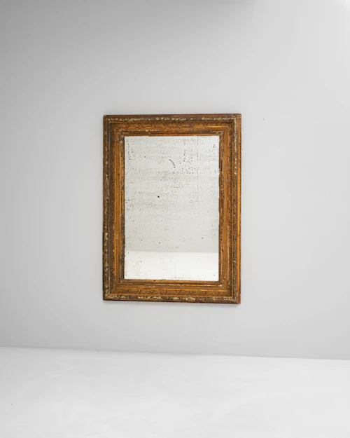 Wood Patinated Mirror With Wrought Iron Details