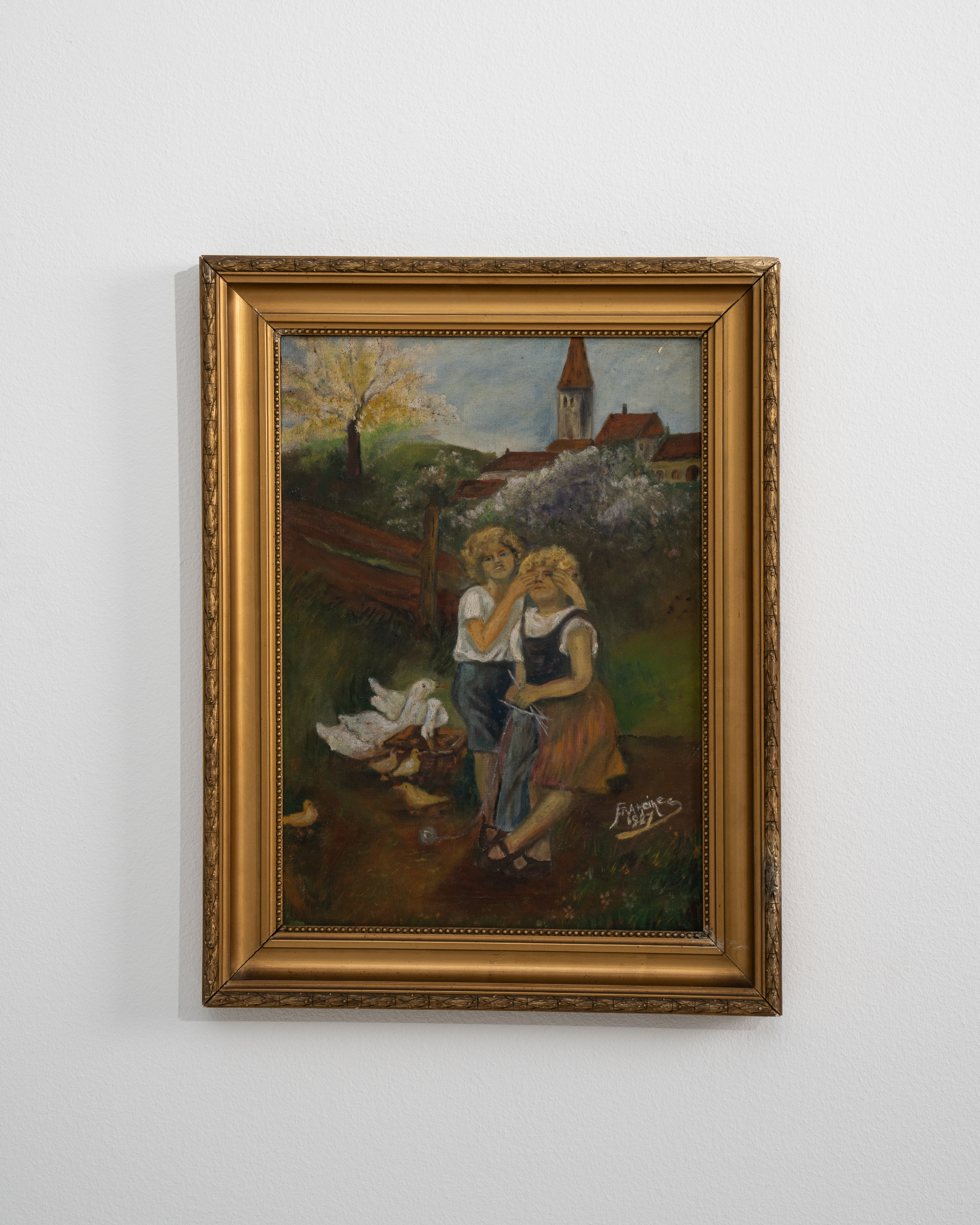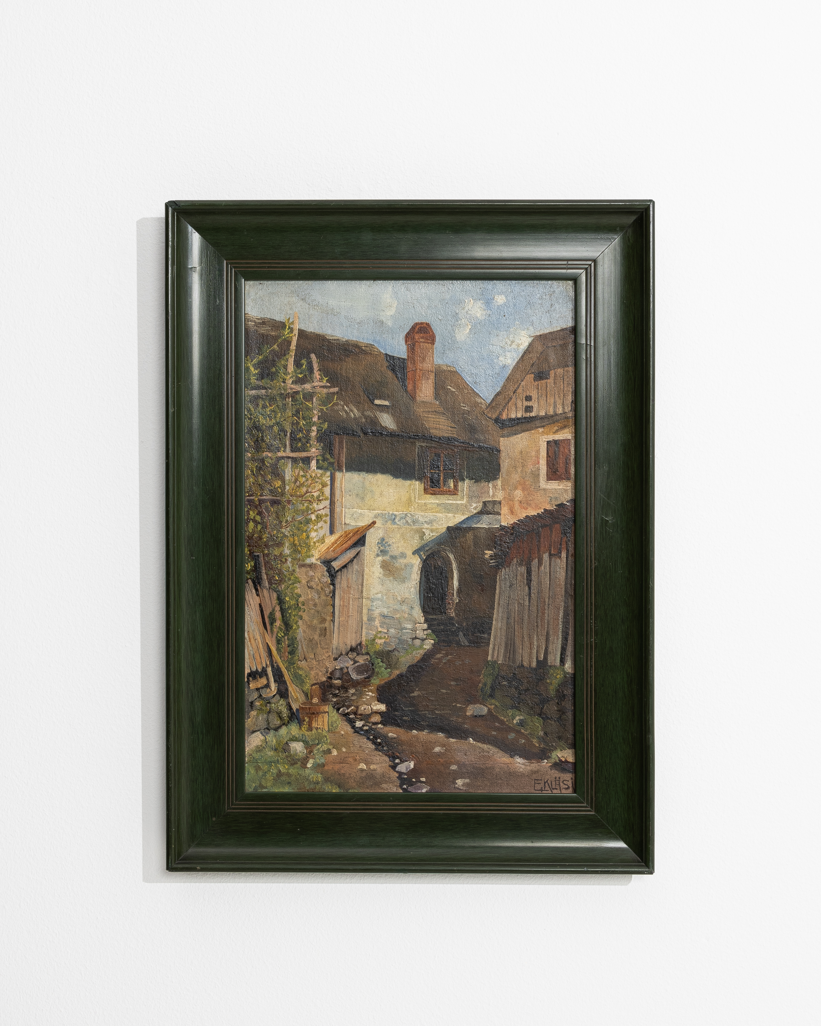 Framed Oil On Canvas Cottage Scene by Ekläsi