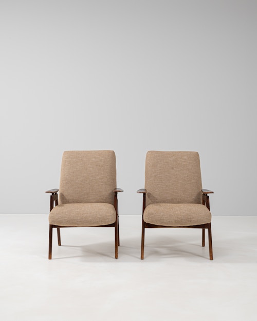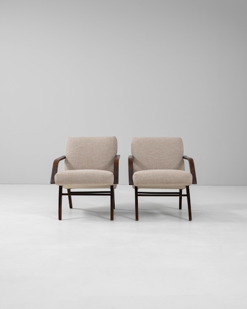Pair Of MCM Upholstered Armchairs By J. Halabala