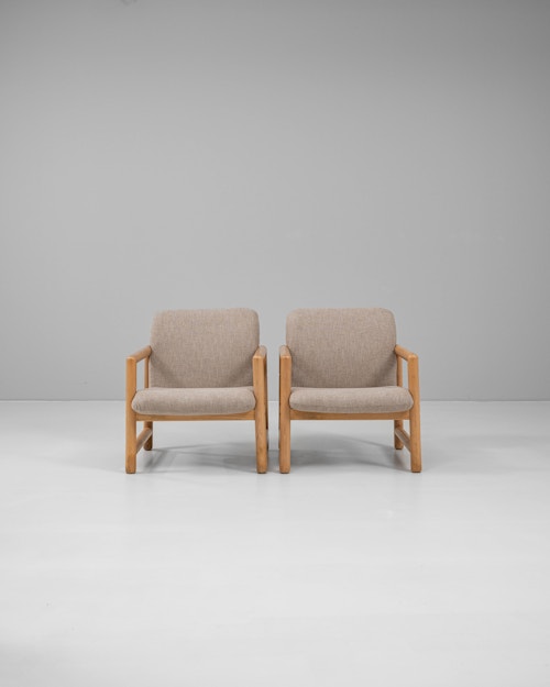 Pair Of Oak Armchairs With Upholstered Seats And Backs