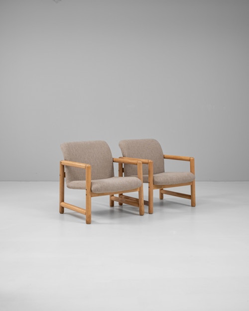 Pair Of Brutalist Oak Armchairs With Upholstered Cushions