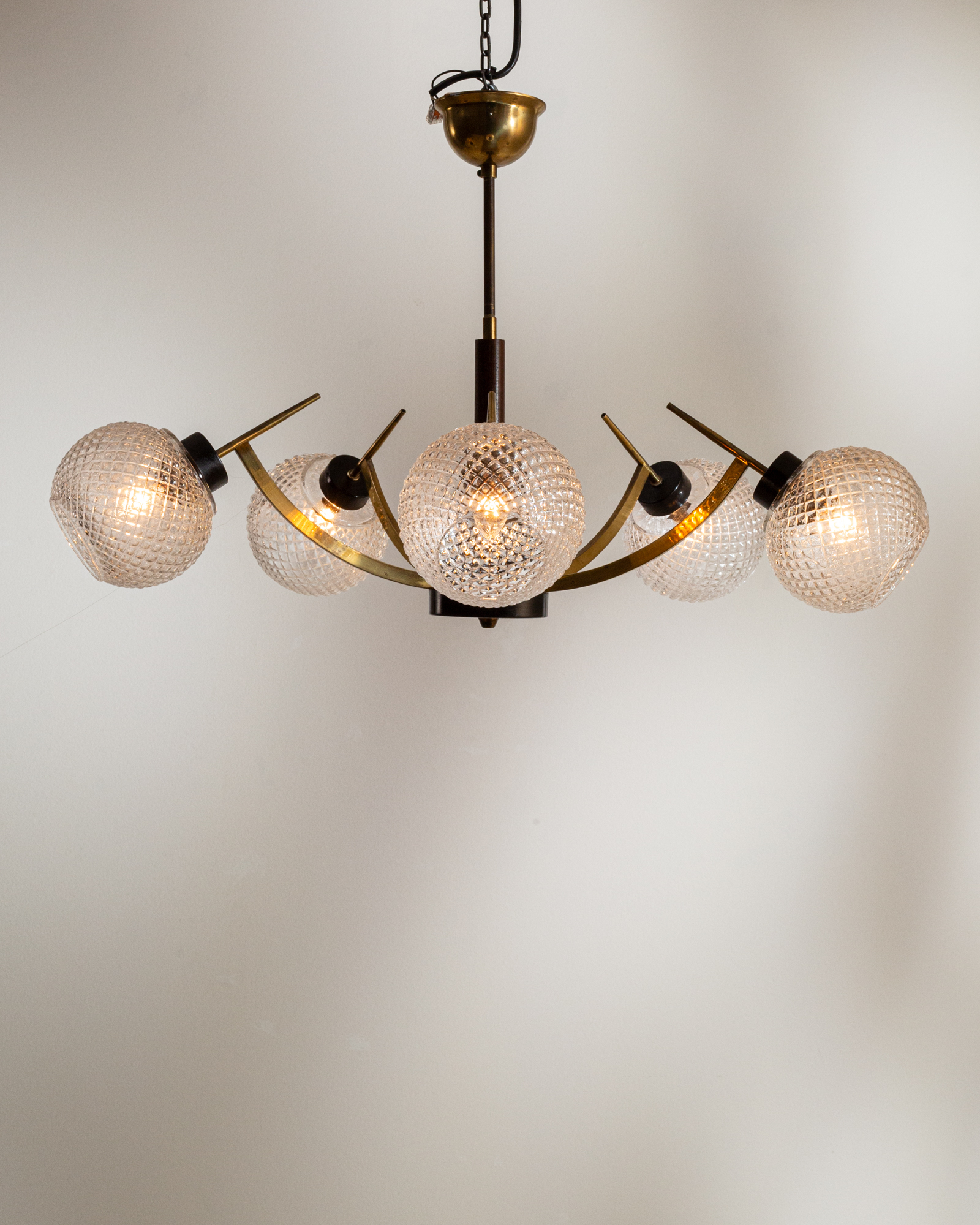 Mid-Century Modern Brass & Glass Chandelier