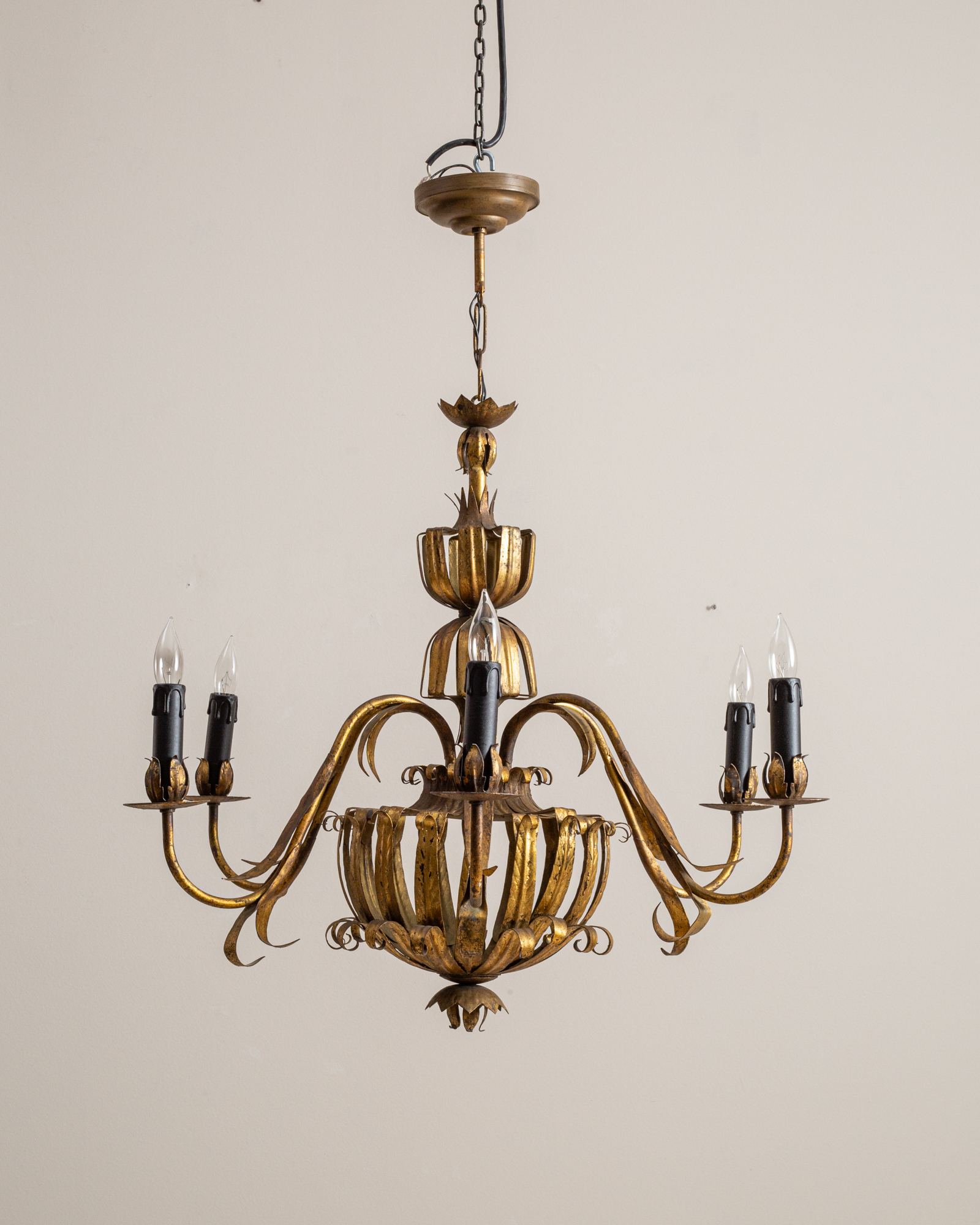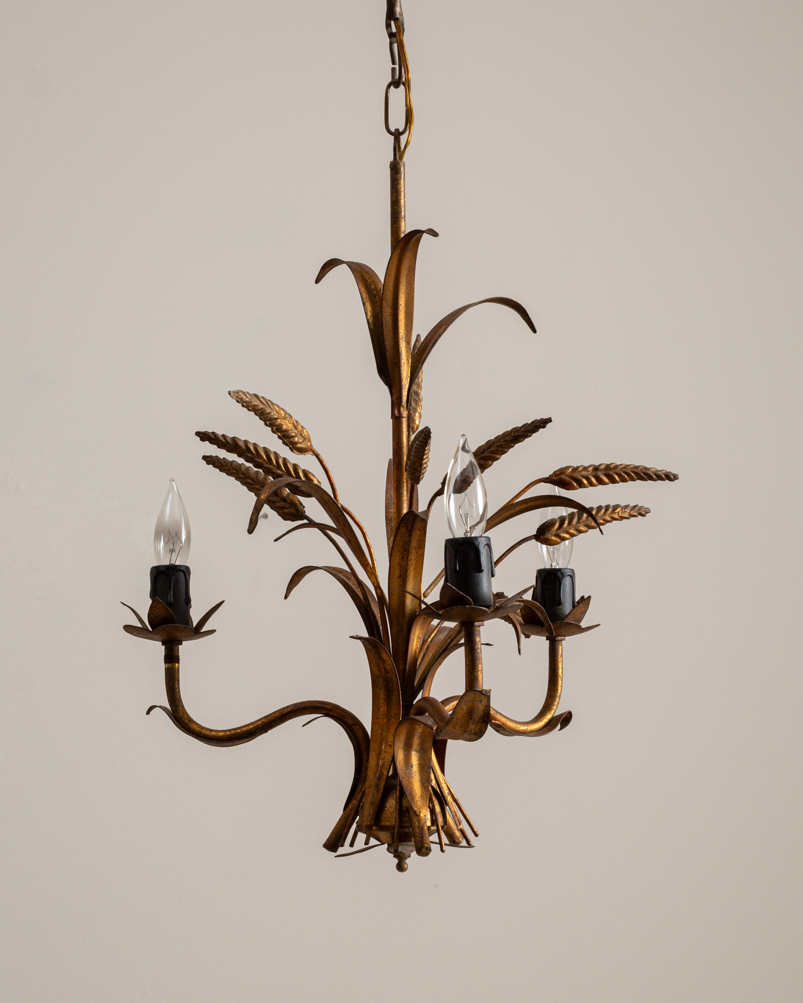 Gilded Florentine Tole Wheat Sheaf Chandelier by Hans Kögl
