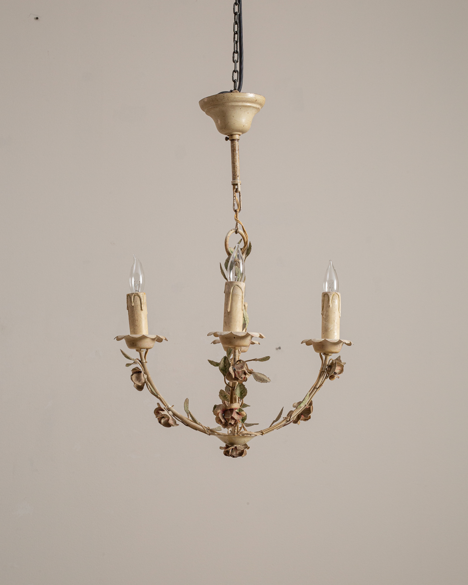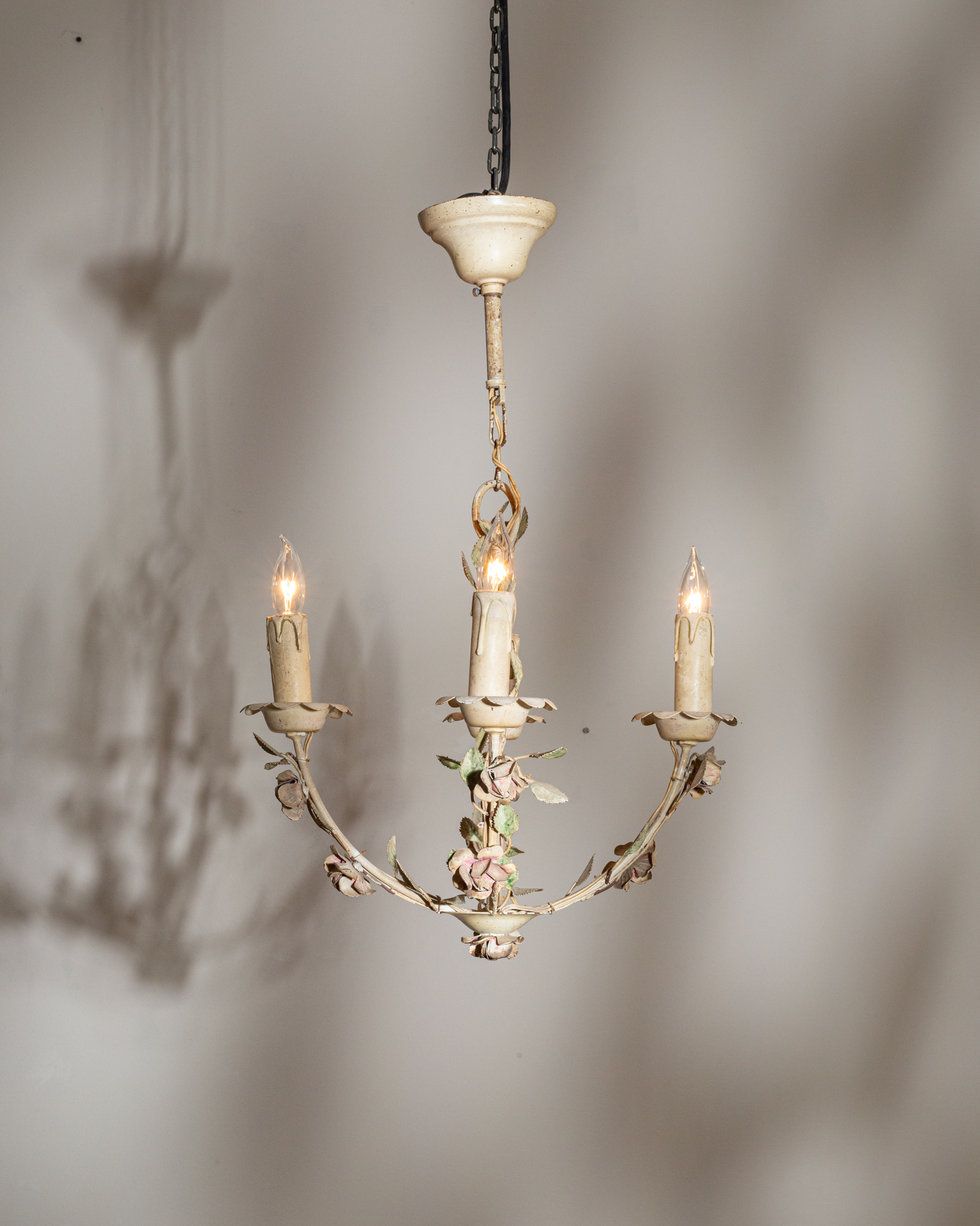 More info About White Patinated Metal Tole Chandelier With Leaf Motif![]()