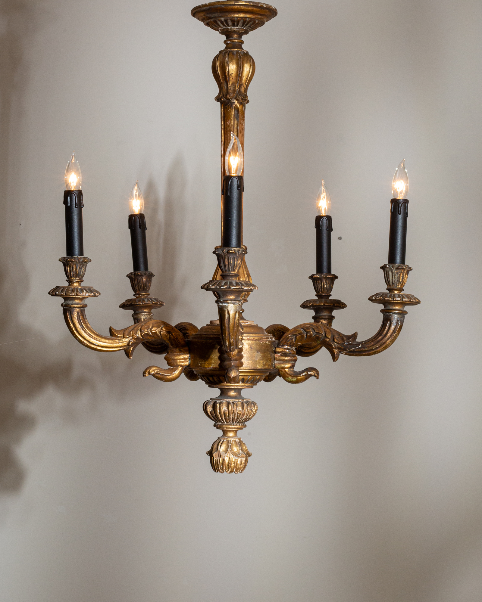 Giltwood Five-Light Chandelier With Carved Acanthus Arms