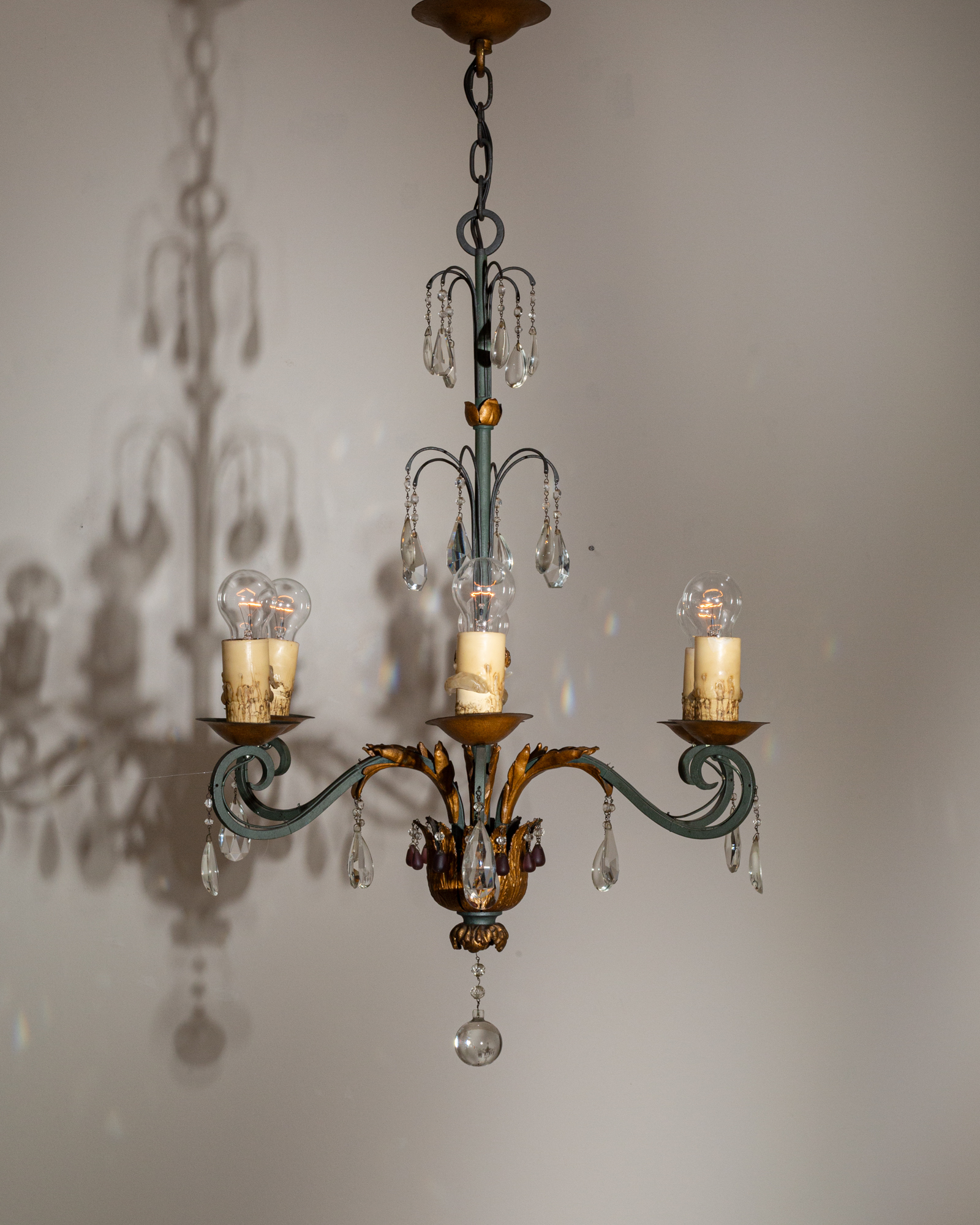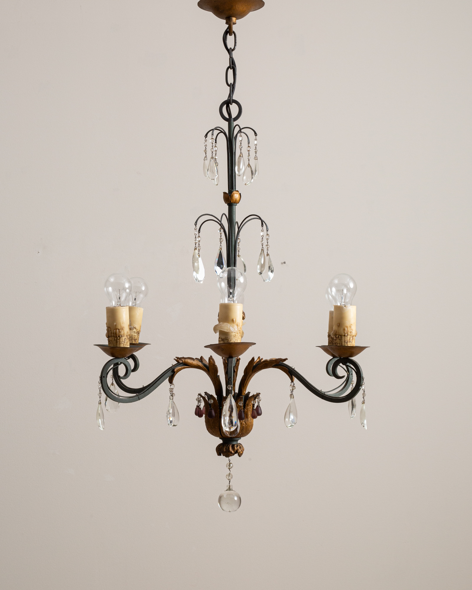 Wrought Iron & Gold-Finished Chandelier With Crystal Accents