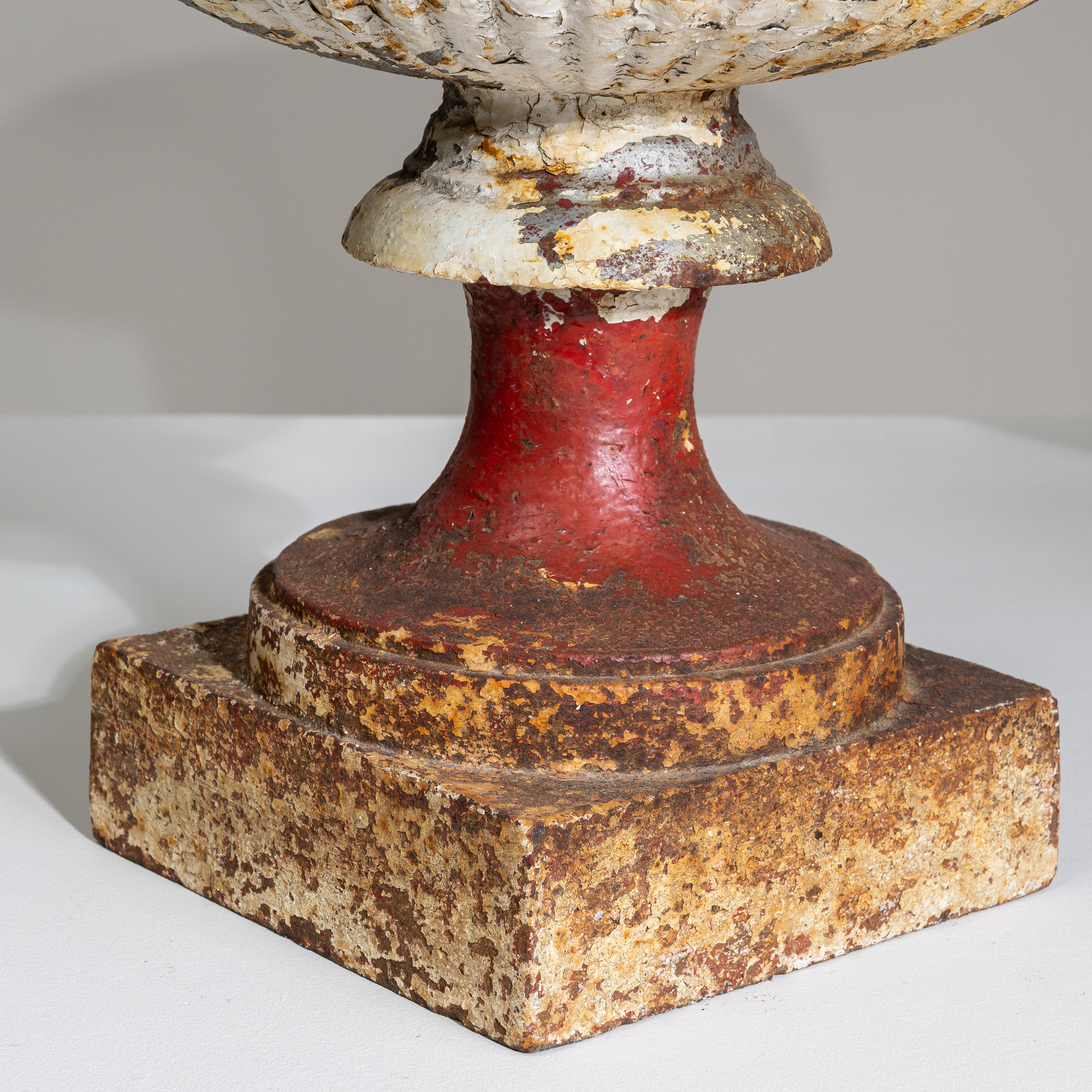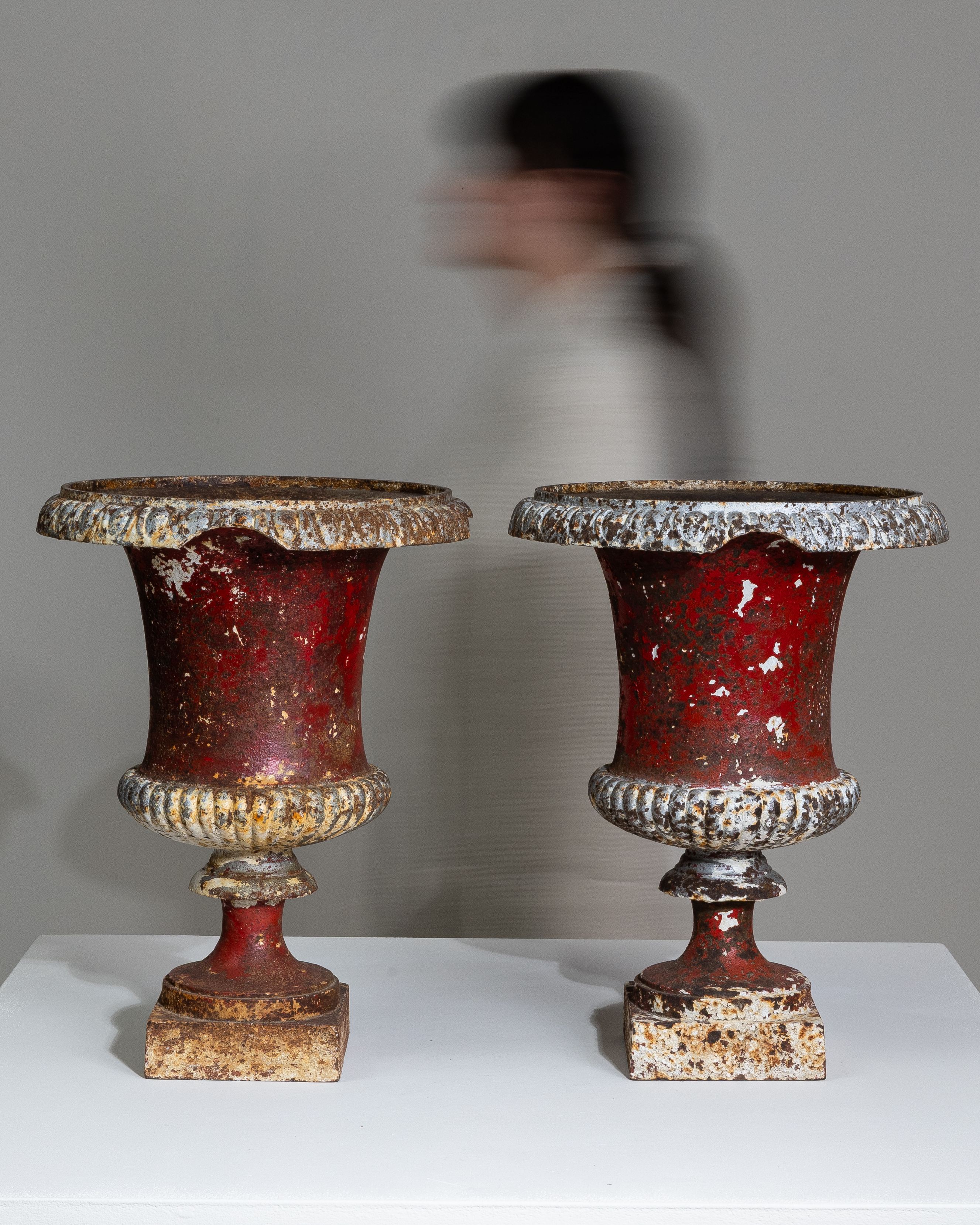 Pair Of Neoclassical Cast Iron Urns On Pedestals