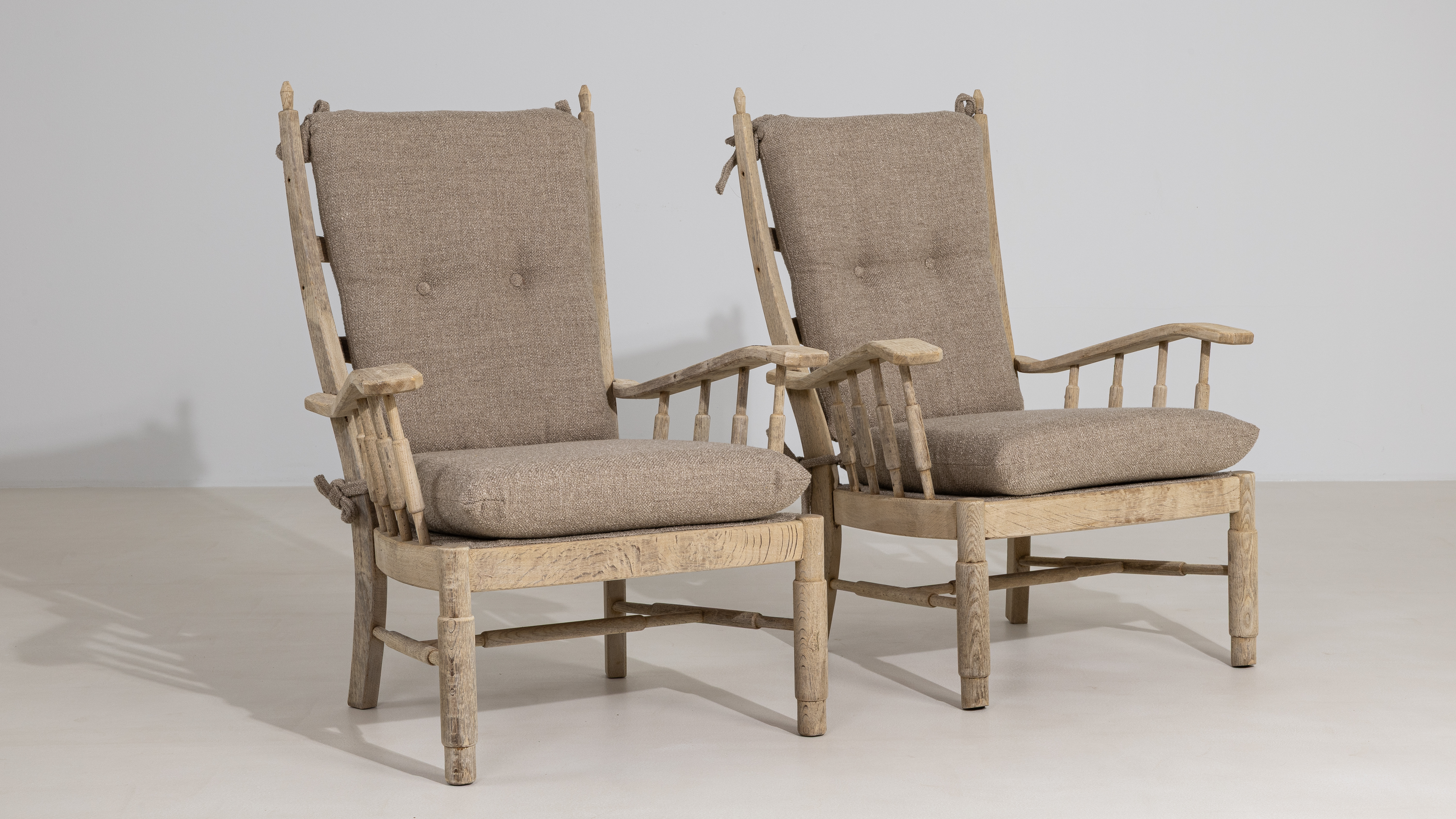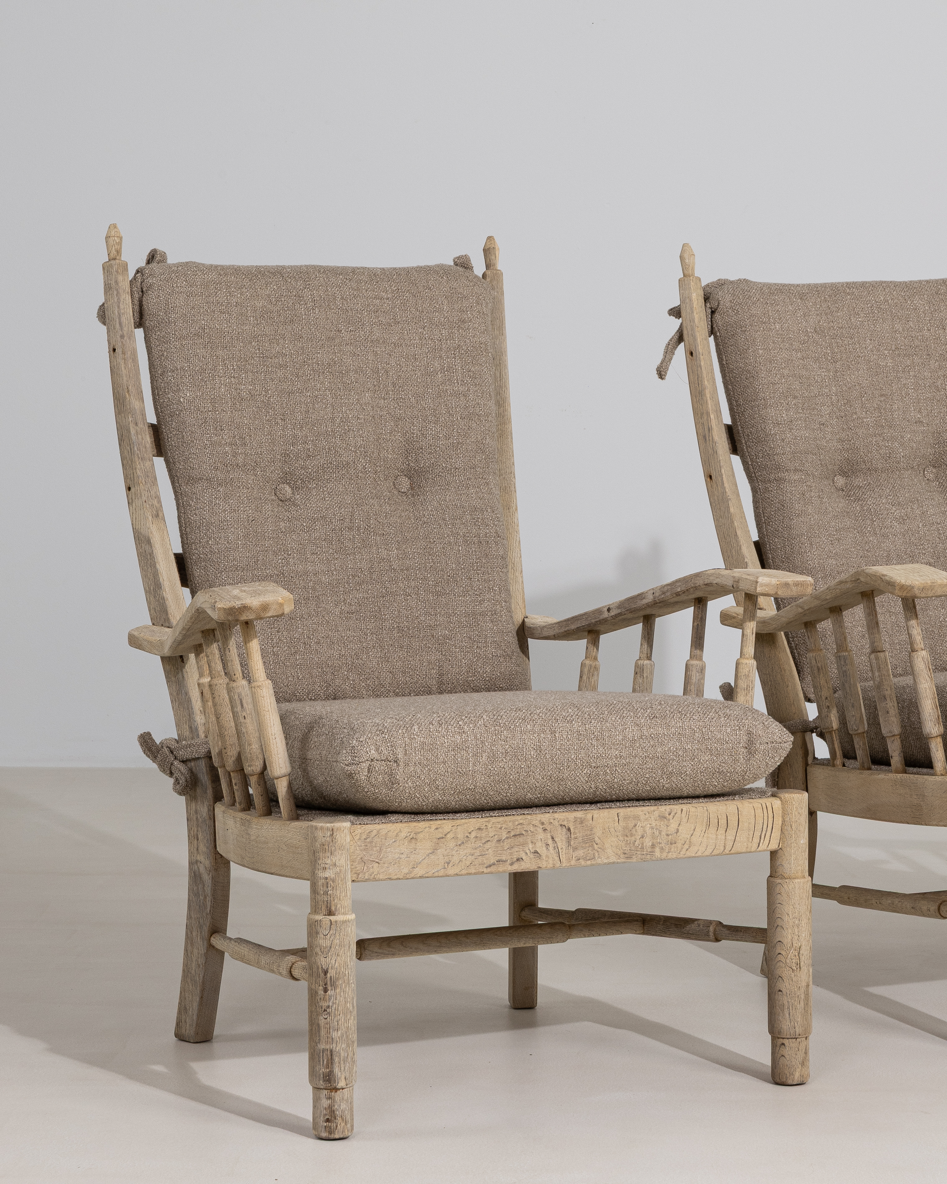 Pair Of Rattan Foster Armchairs With Bouclé Upholstery
