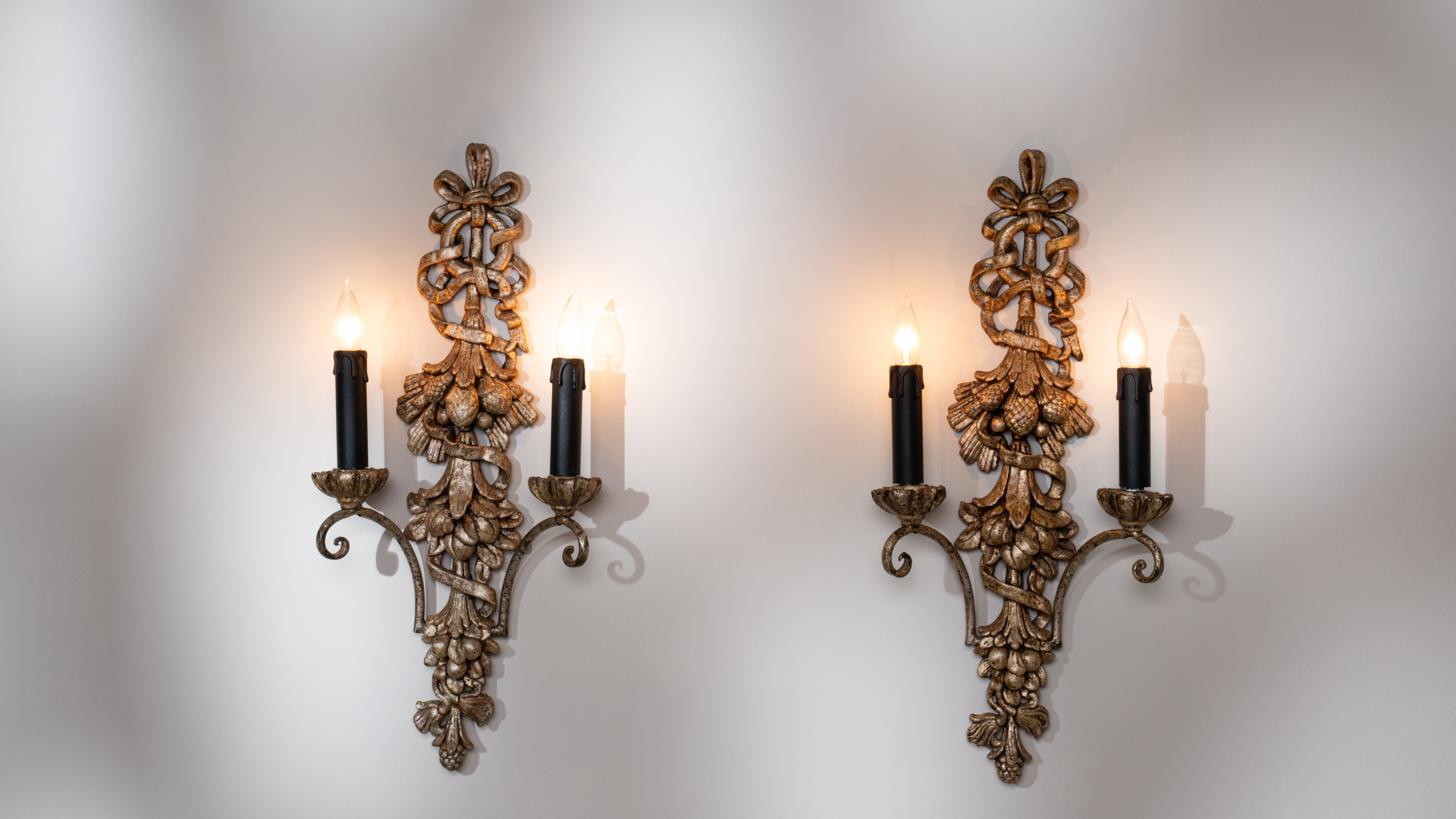 Pair of Carved Wood And Wrought Iron Wall Sconces