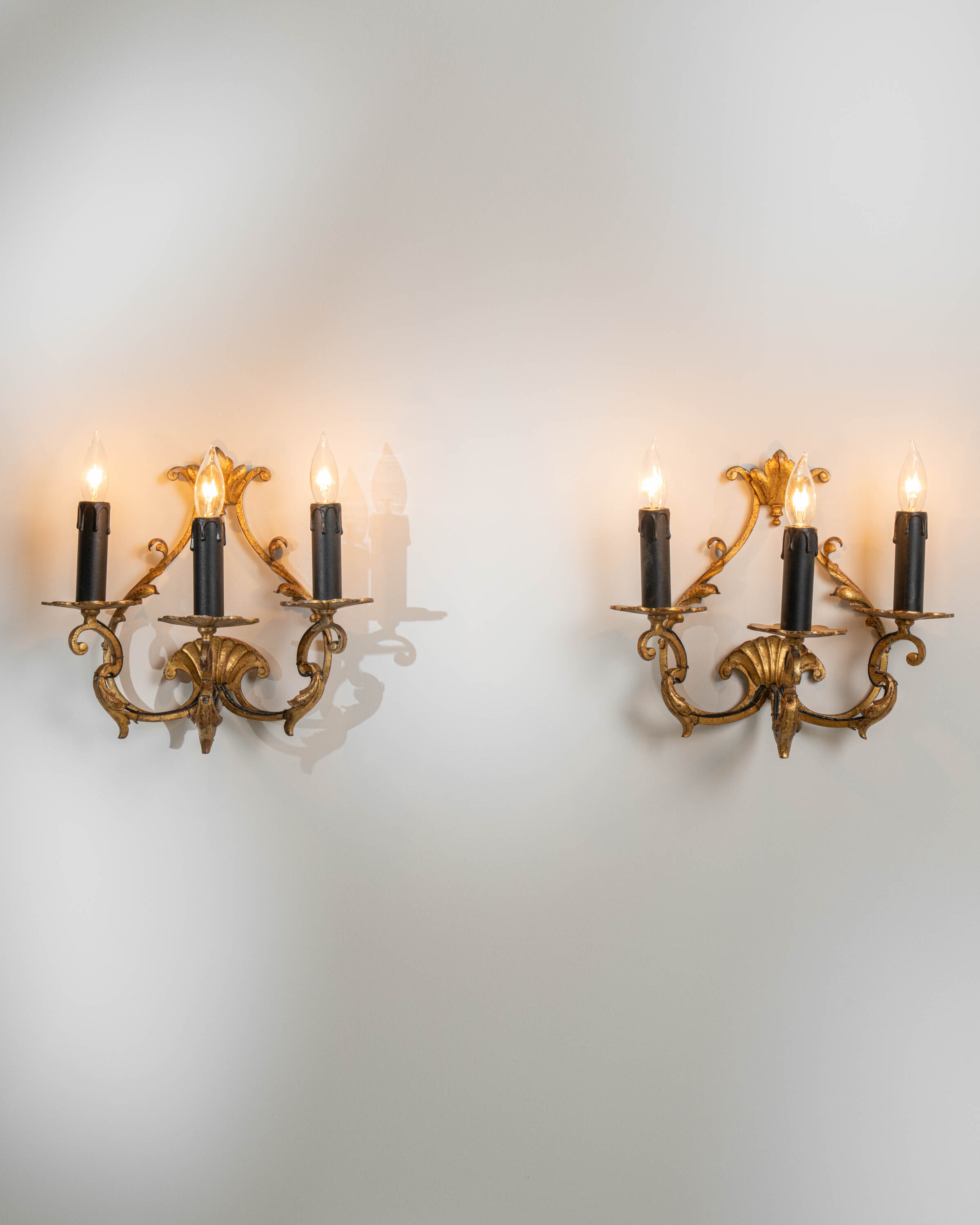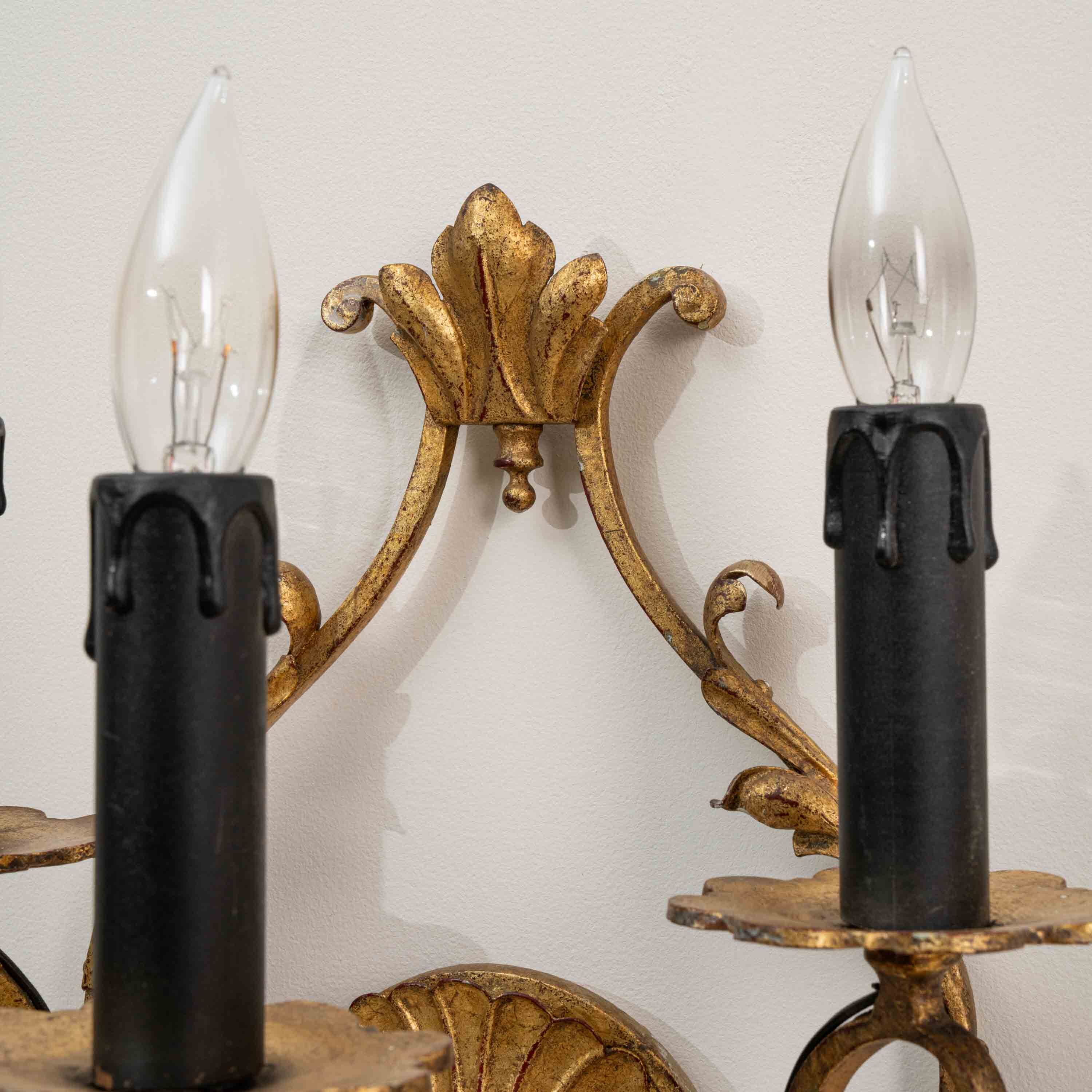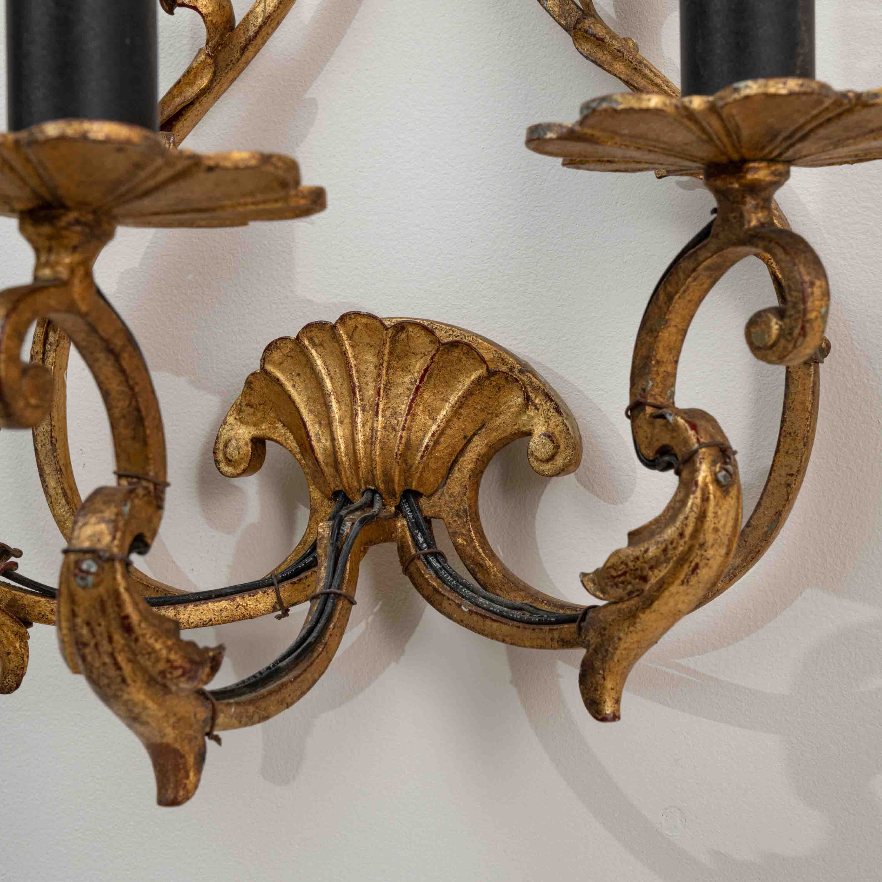 Pair Of Italian Gilded Ribbon And Foliage Wall Sconces