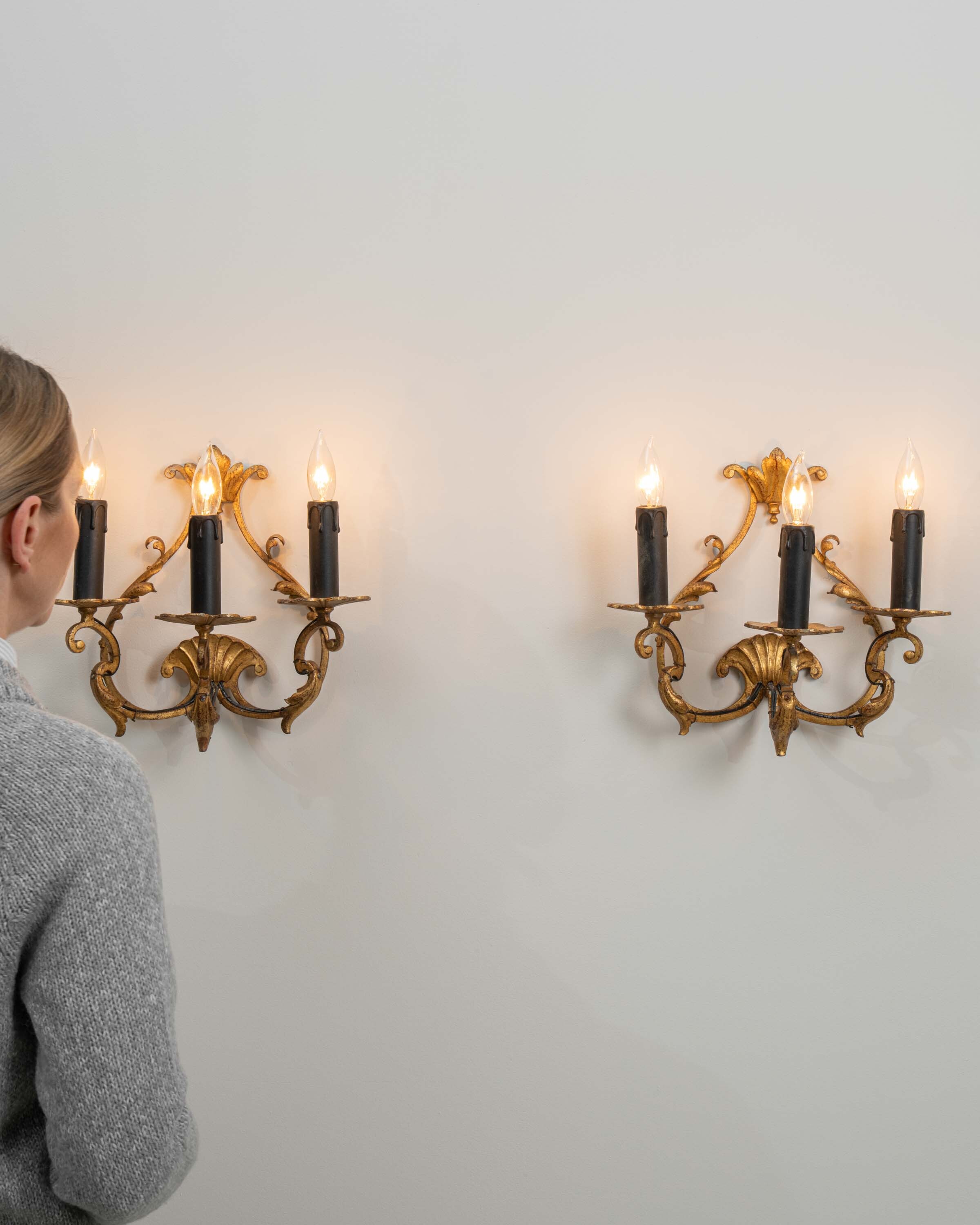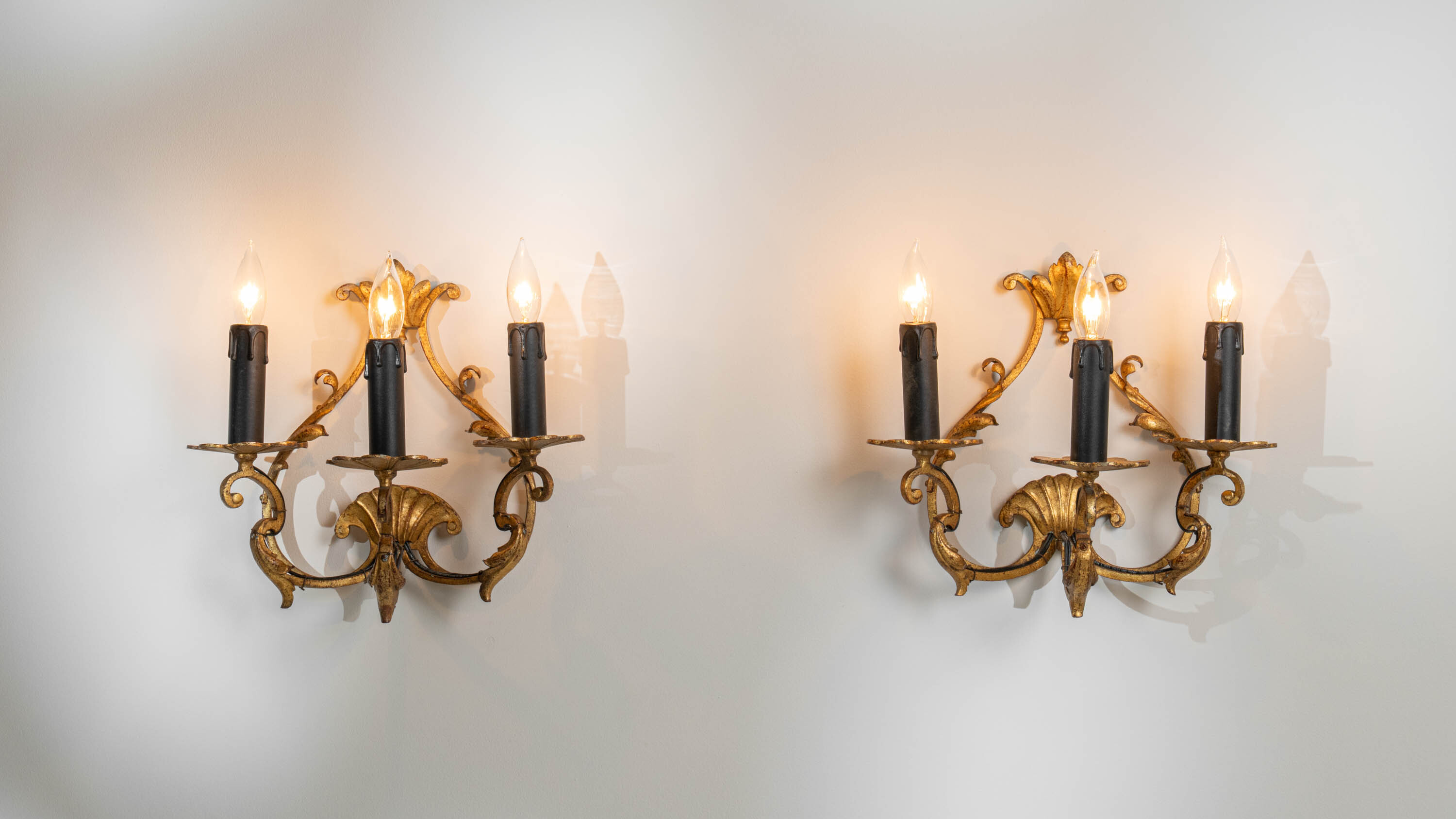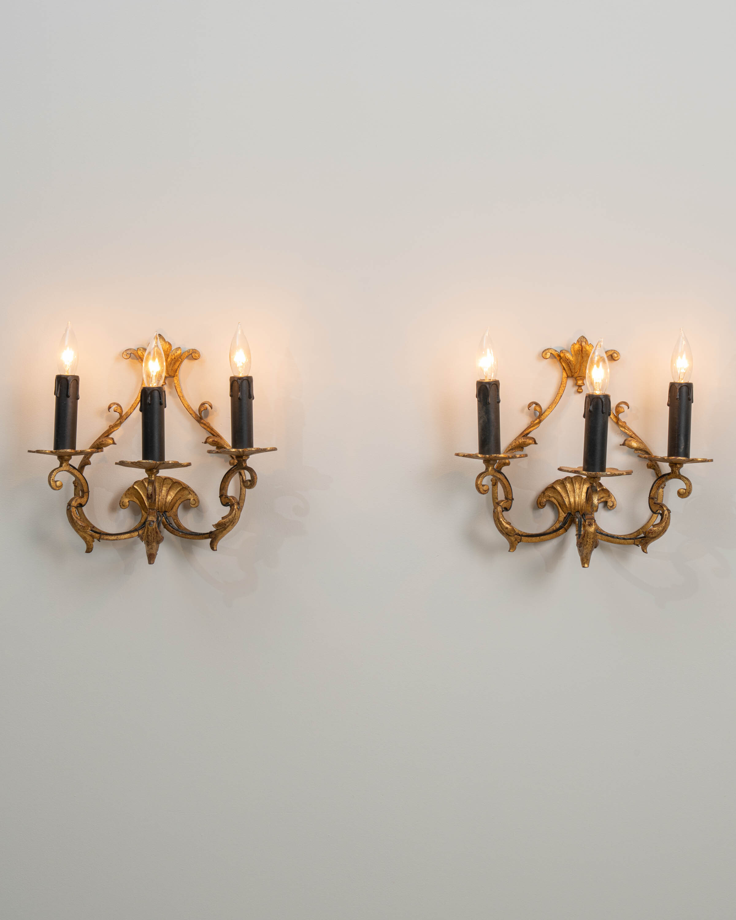 Pair Of Italian Gilded Ribbon And Foliage Wall Sconces