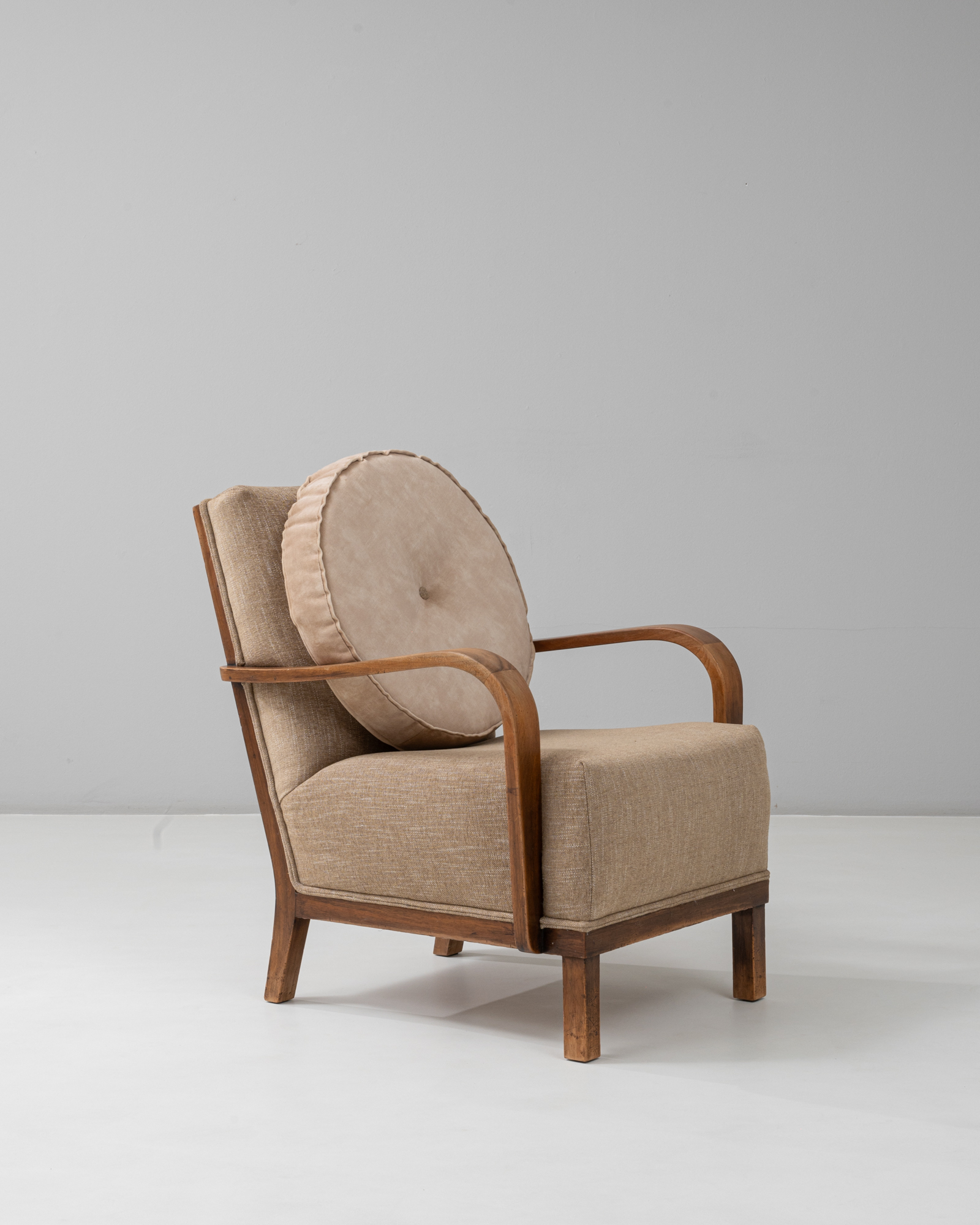 Art Deco Style Upholstered Lounge Chair With Curved Arms