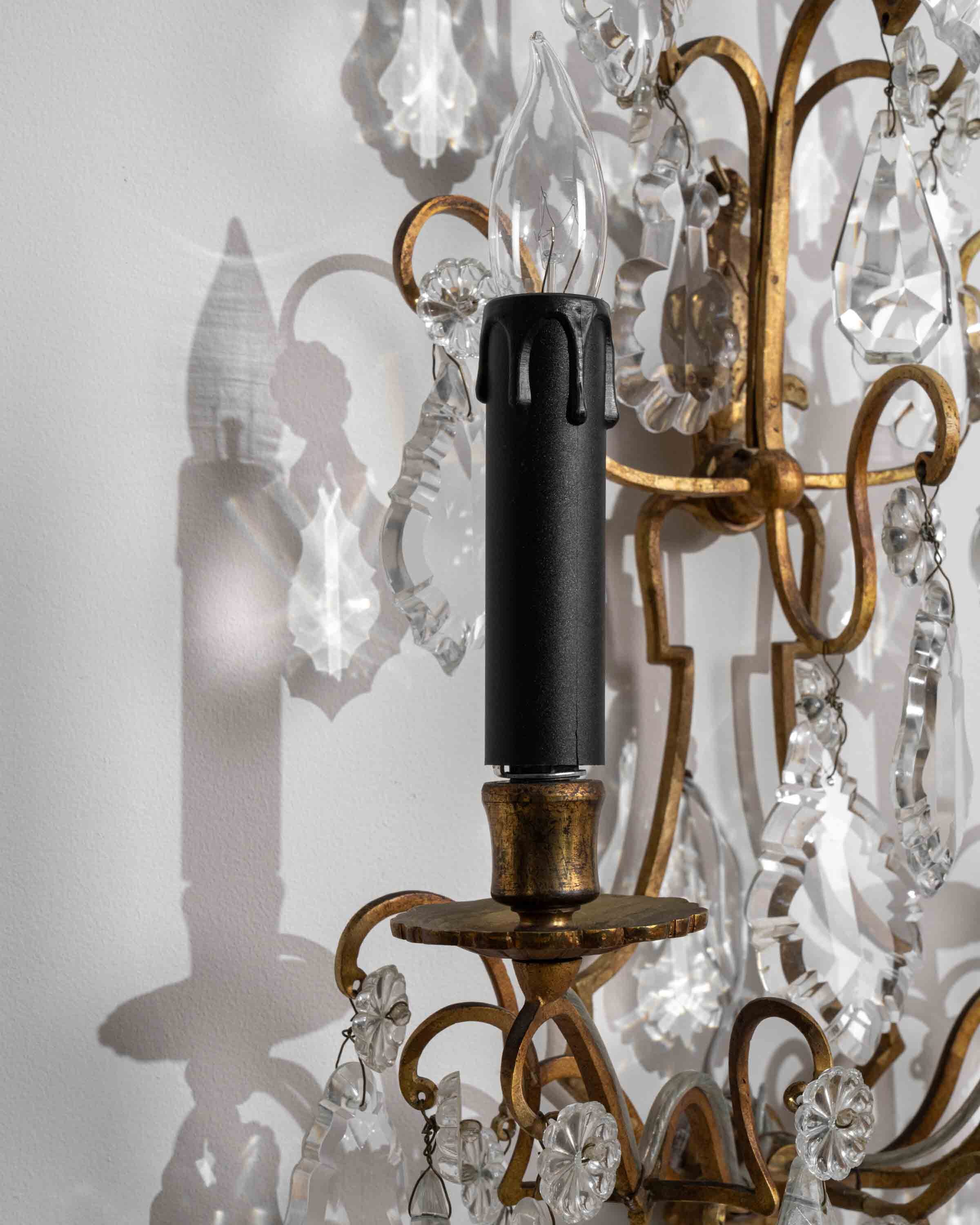Pair of Carved Wood And Wrought Iron Wall Sconces