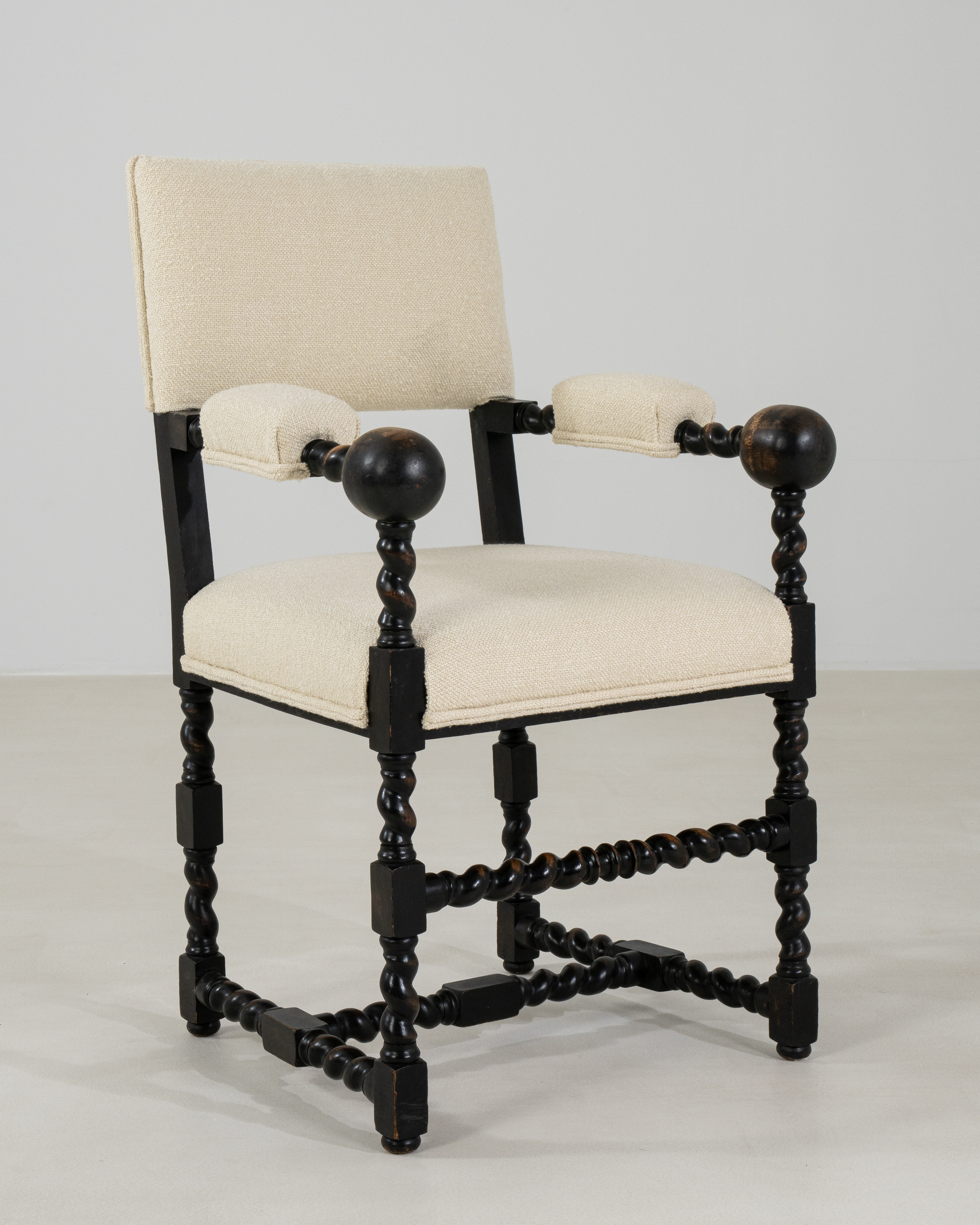 Louis XIII Oak Throne Armchair With Upholstered Seat And Back