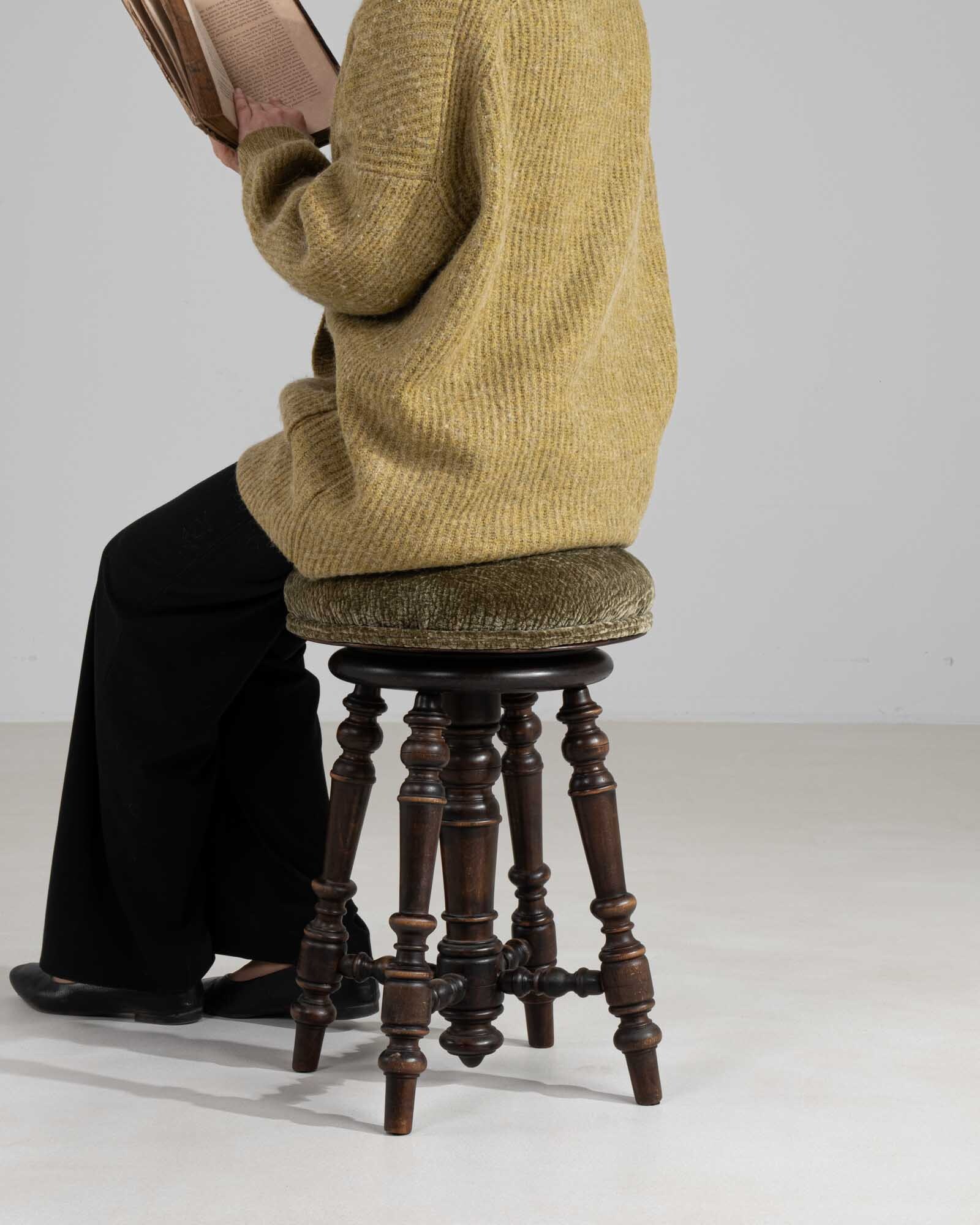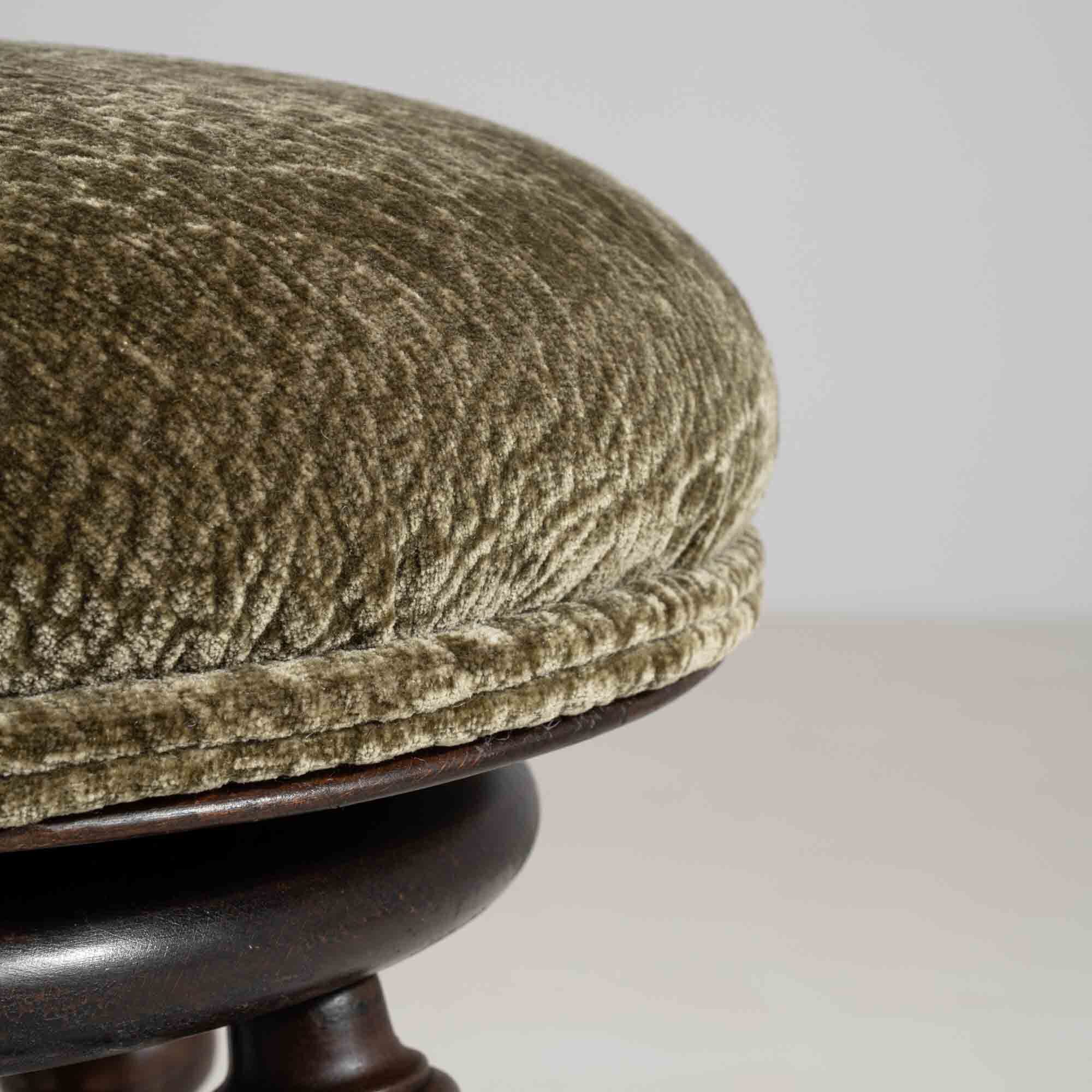 Brass Adjustable Stool With Upholstered Seat and Tripod Base