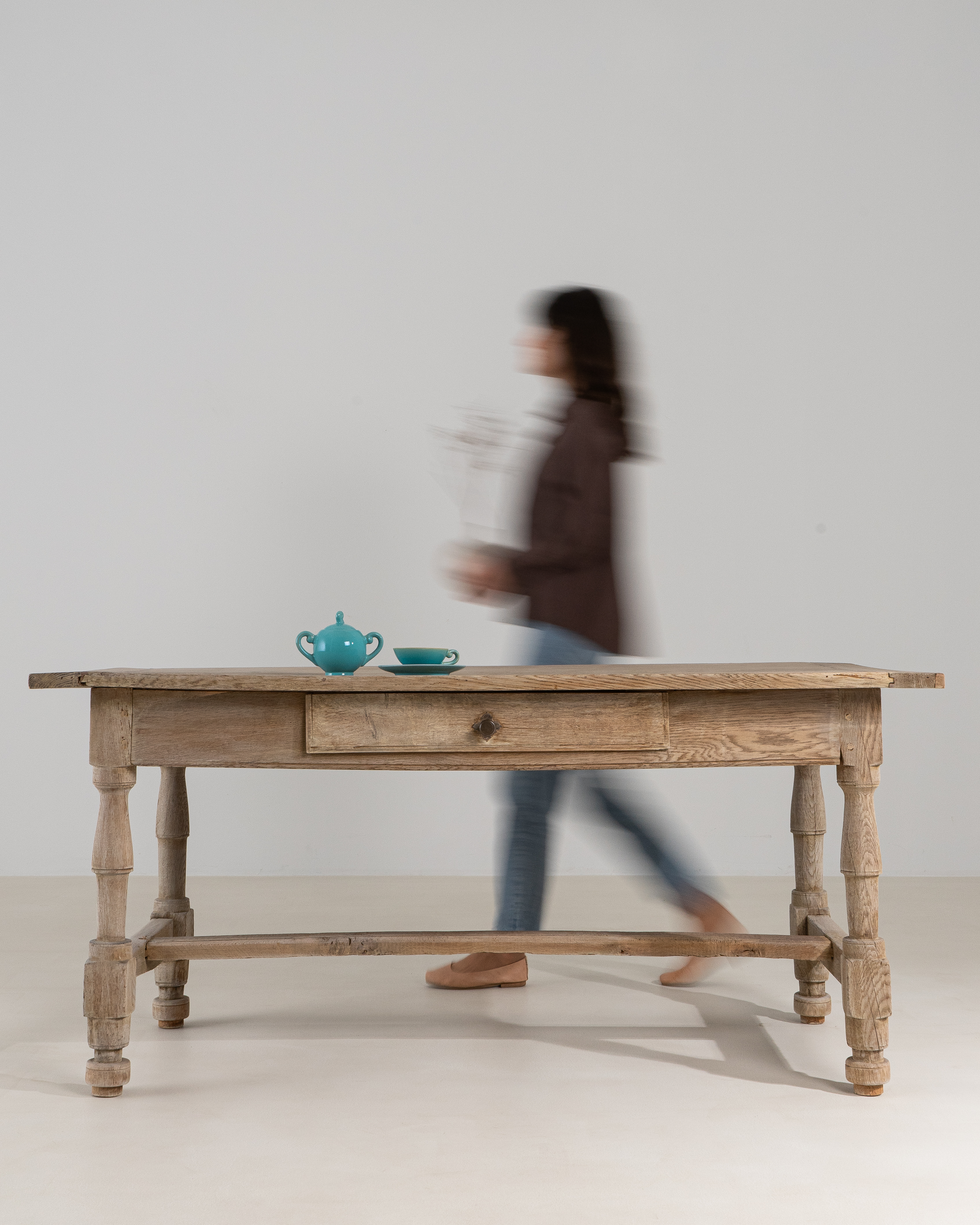 French Oak Dining Table With Single Drawer