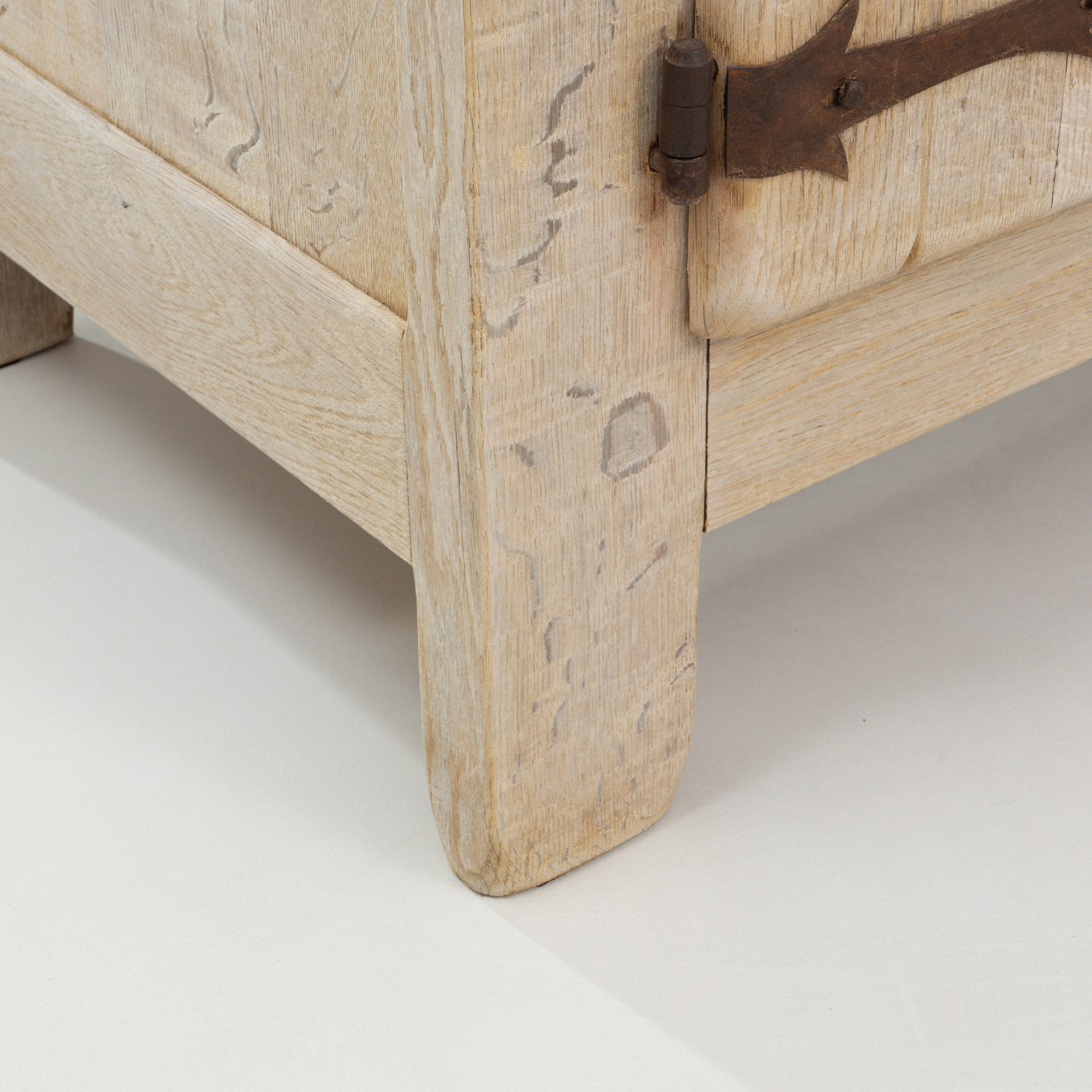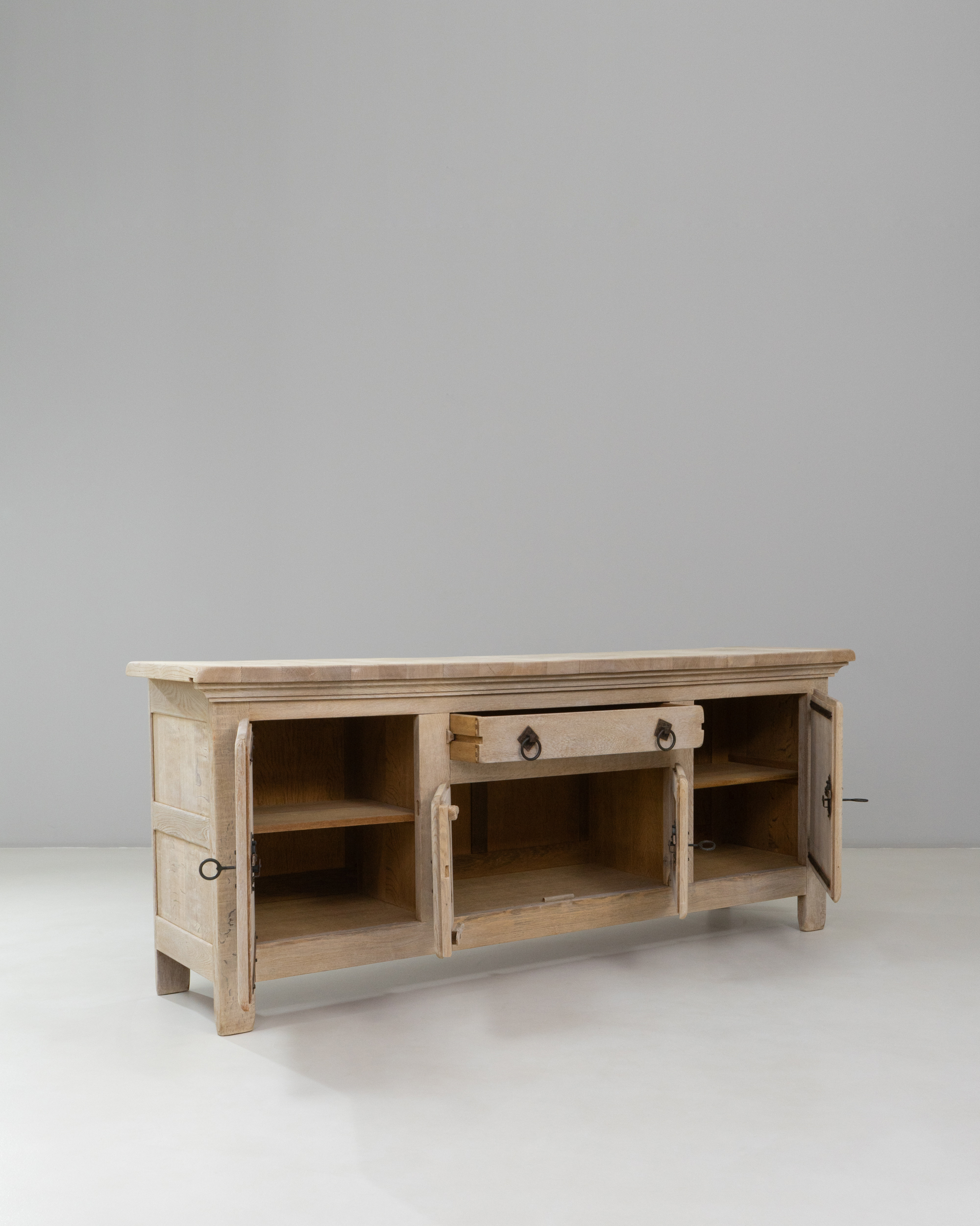 Oak 4-door Buffet With Carved Panel Doors And Iron Hardware