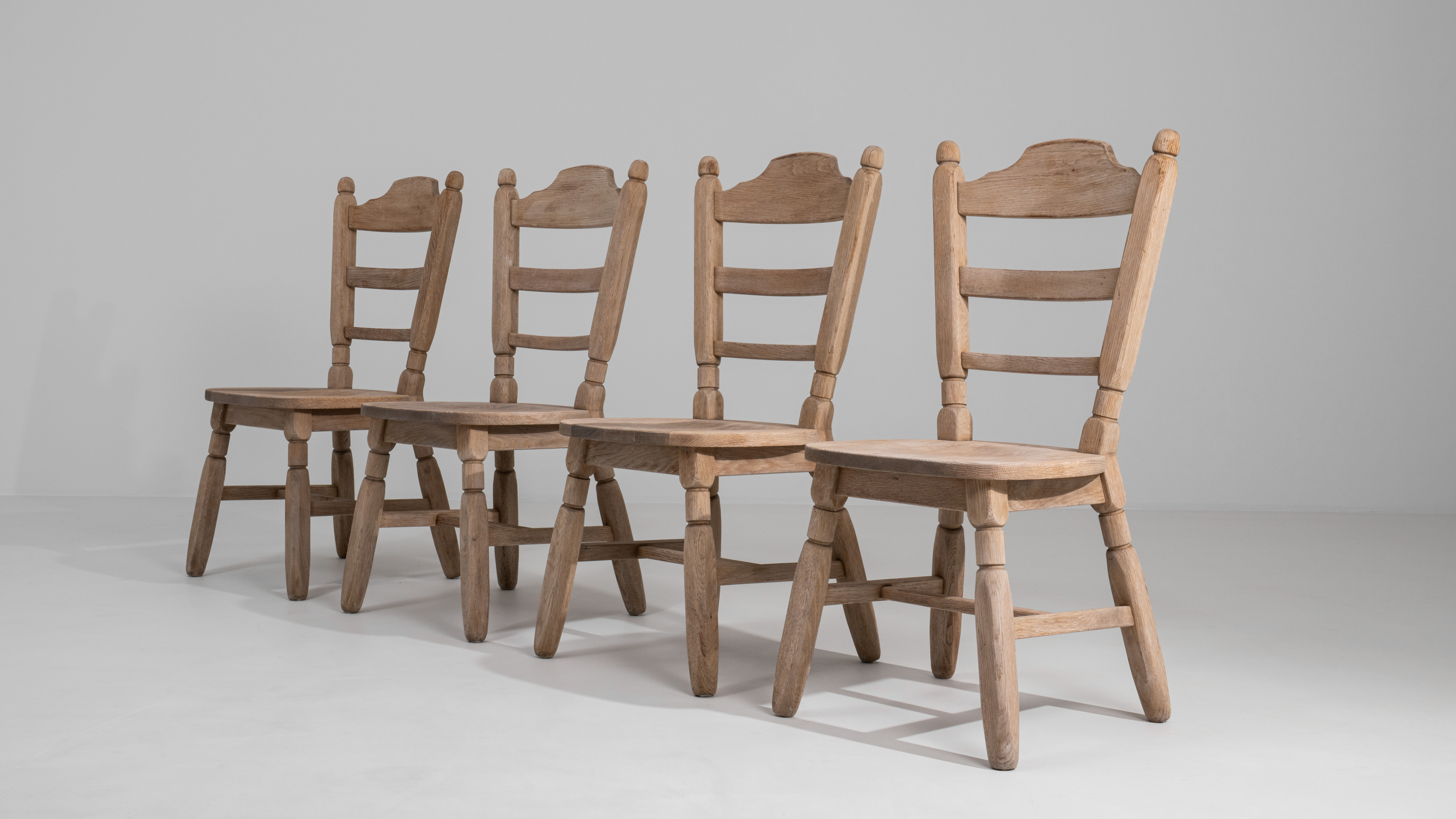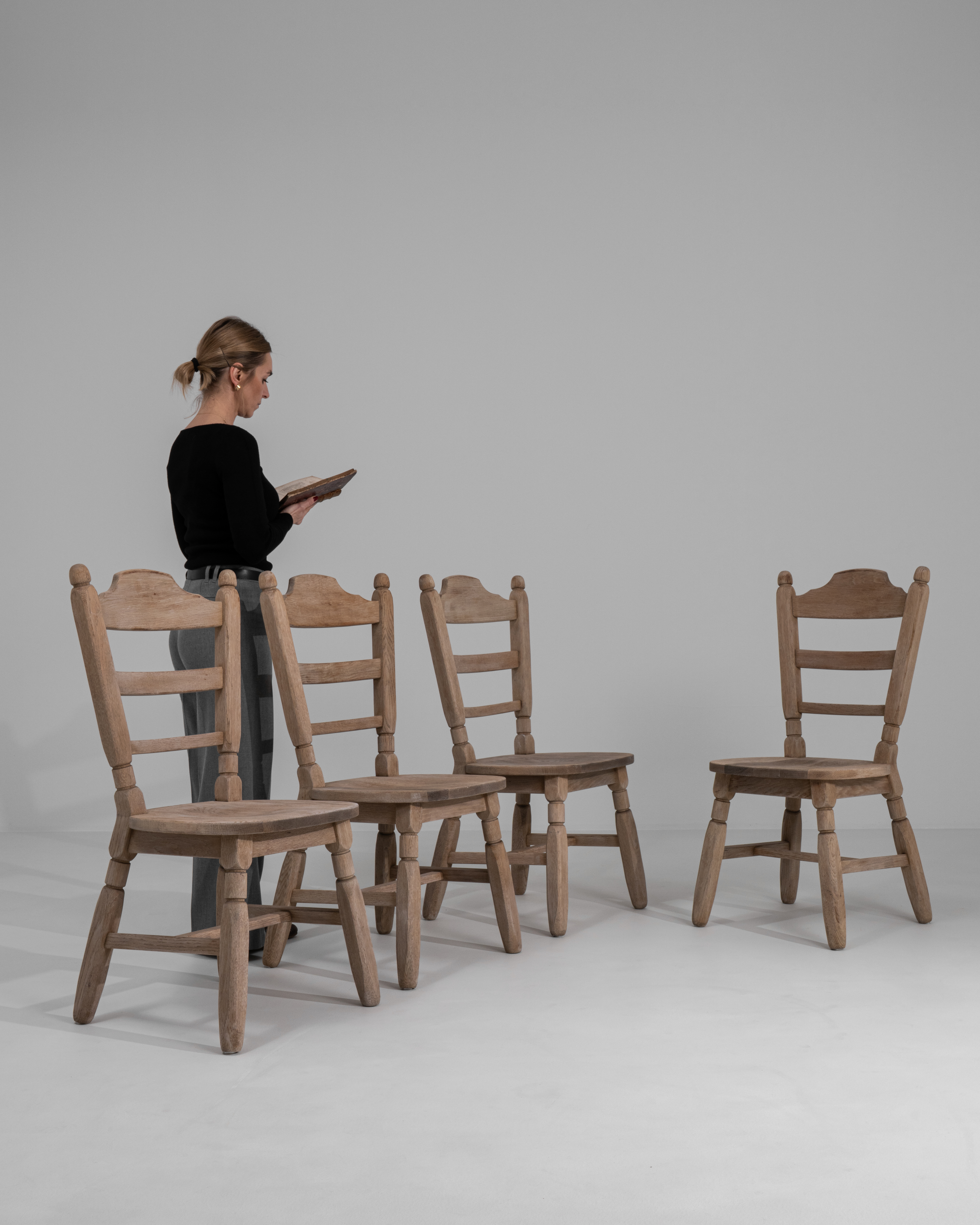 Set Of Oak Dining Chairs With Upholstered Seats