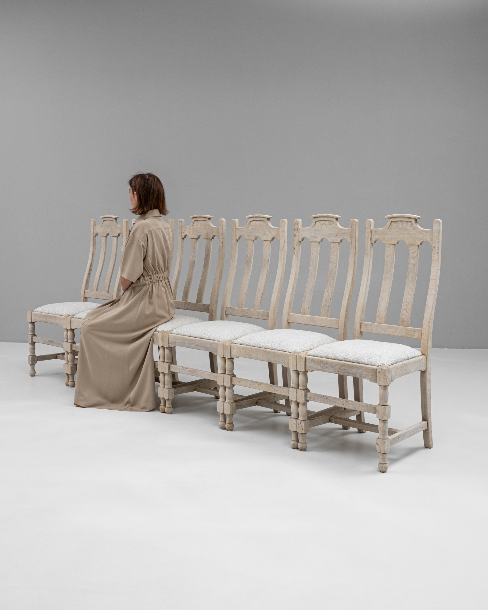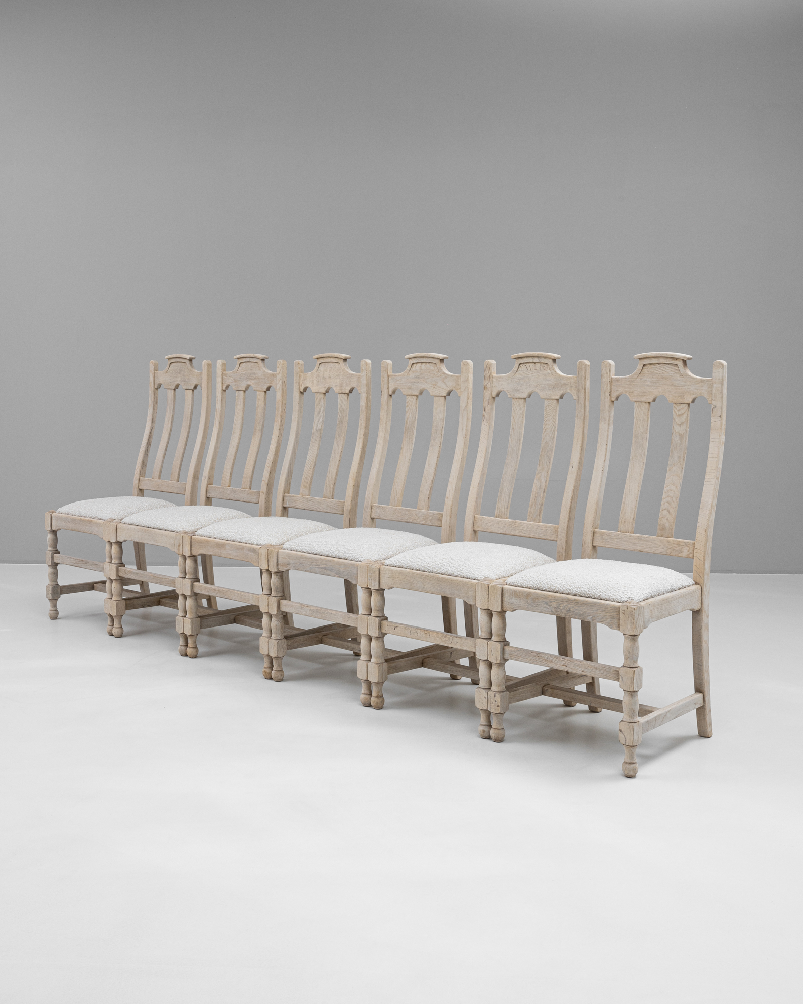 Set Of Bleached Oak Upholstered Dining Chairs