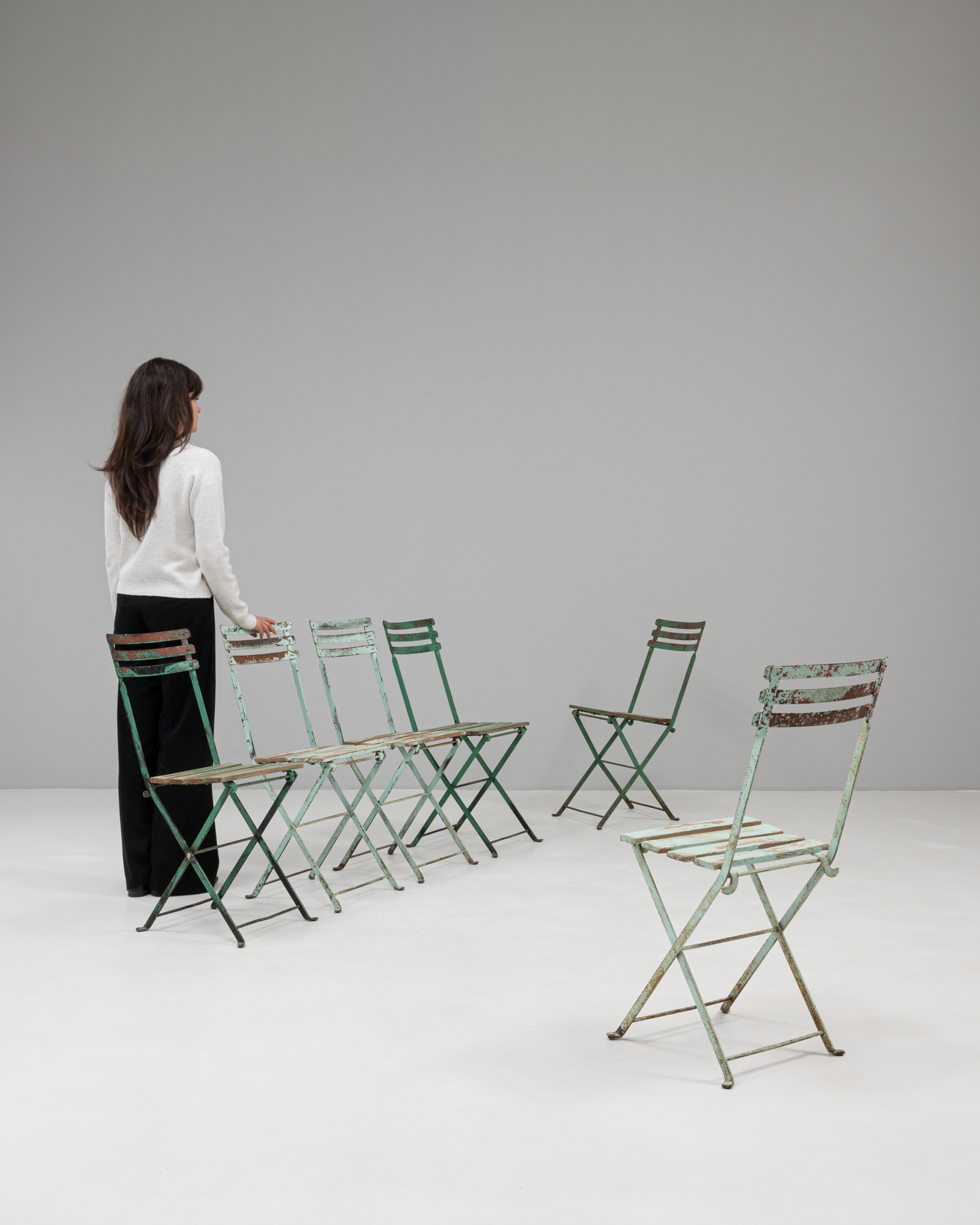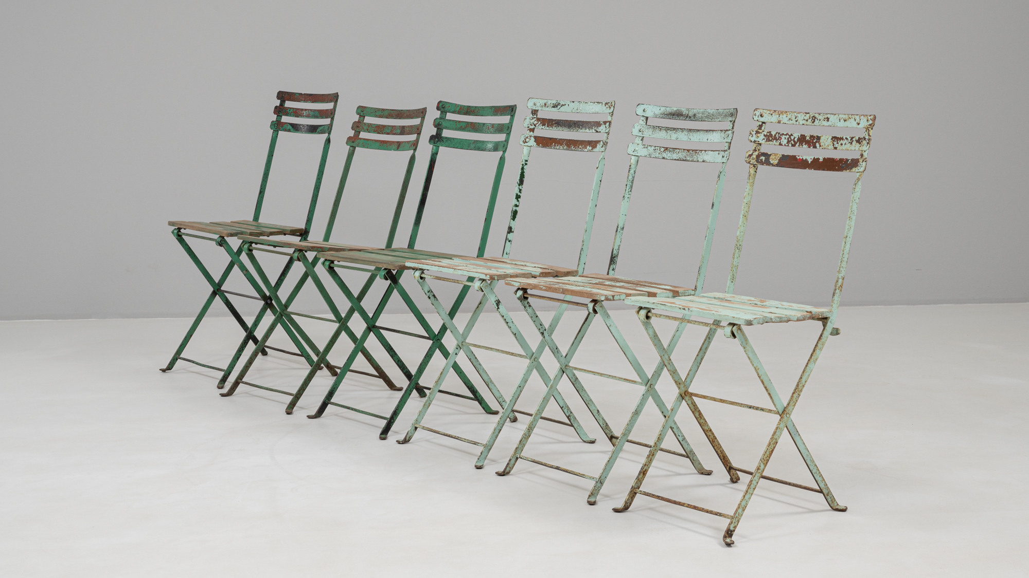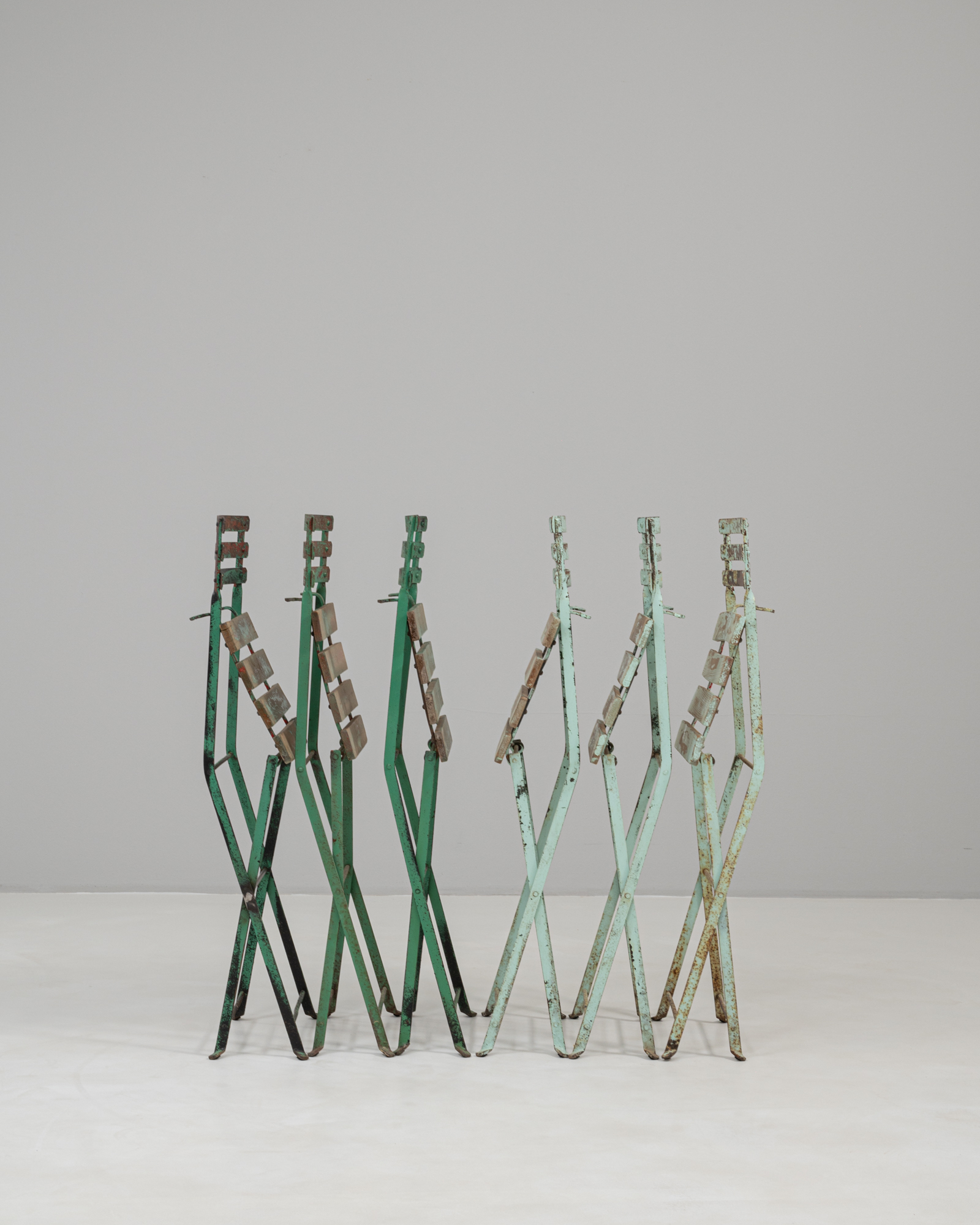 Set Of Wood White Patinated Garden Chairs