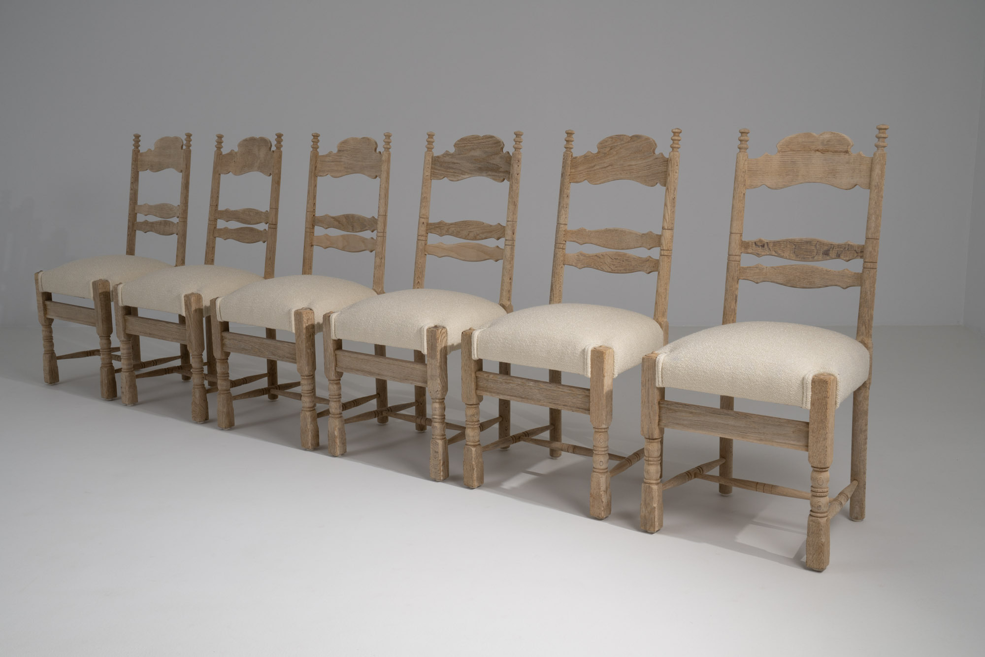 Set Of Six Brutalist Oak Dinning Chairs