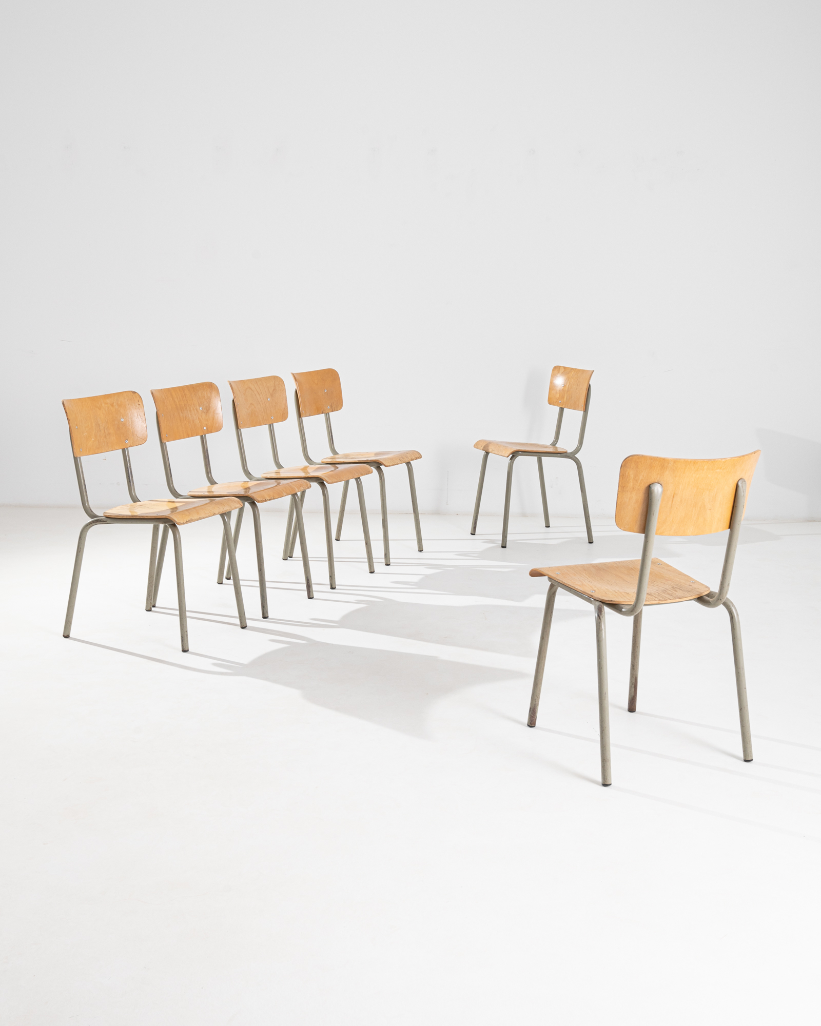Set Of Metal Chairs With Wooden Seats And Backs By Tubax