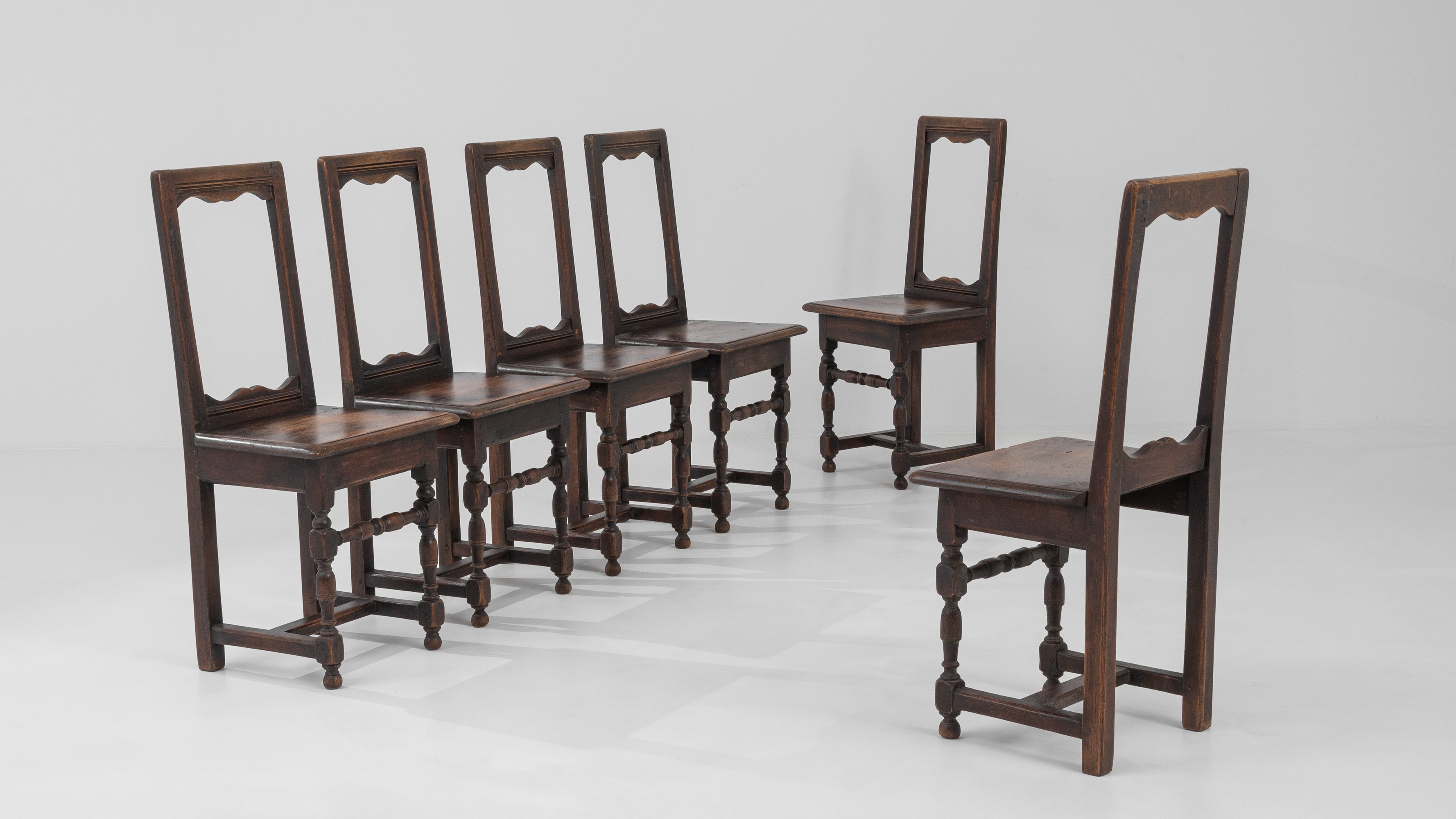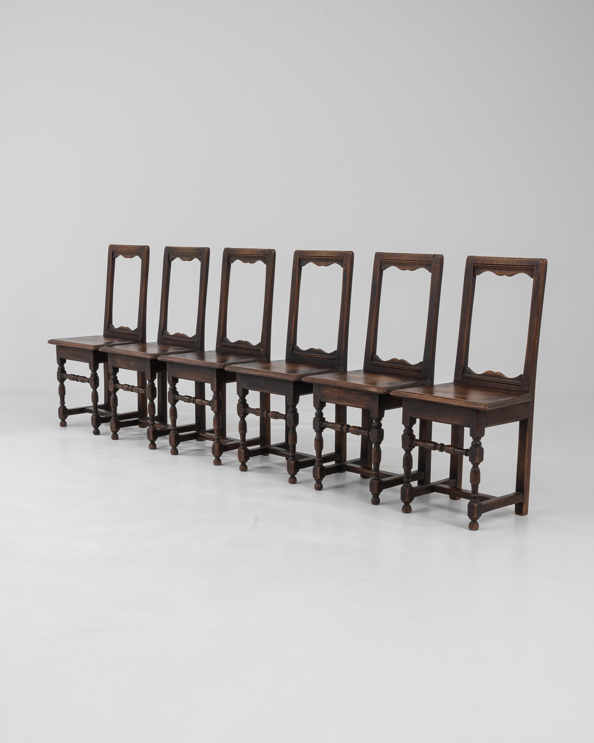 Set Of Six Oak Dining Chairs With Upholstered Seats