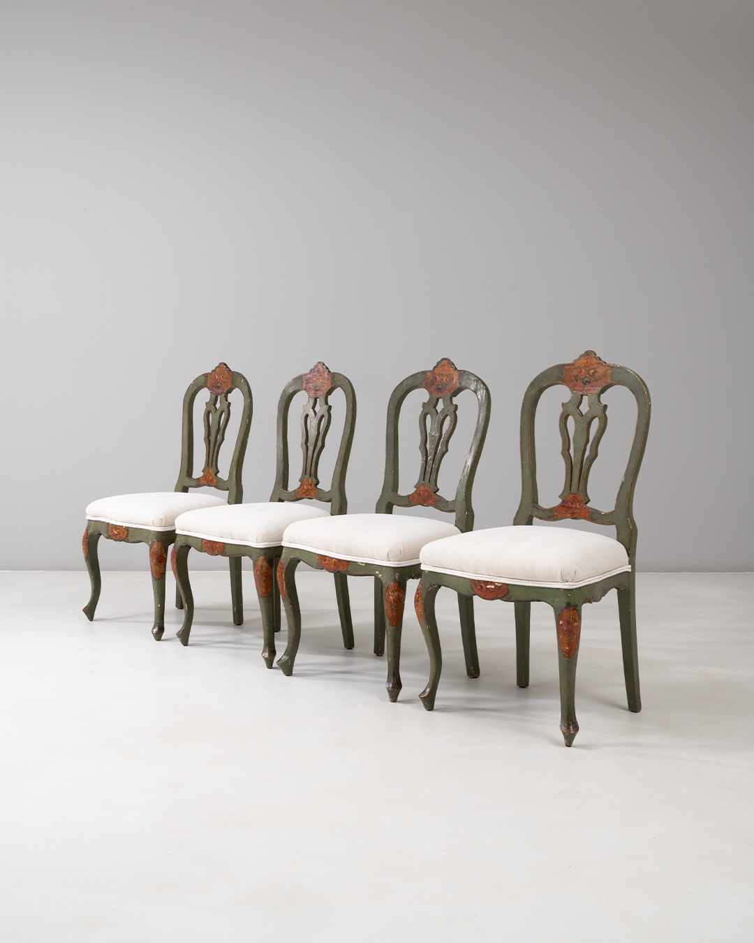 Set of Four Venetian Patinated Dining Chairs