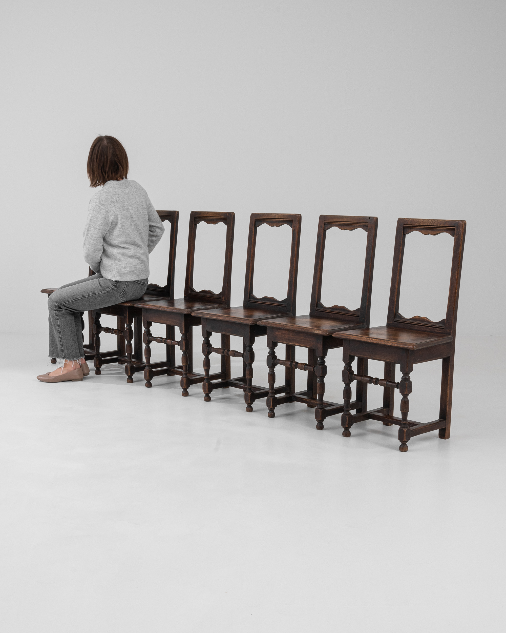 Set Of Oak Dining Chairs With Upholstered Seats