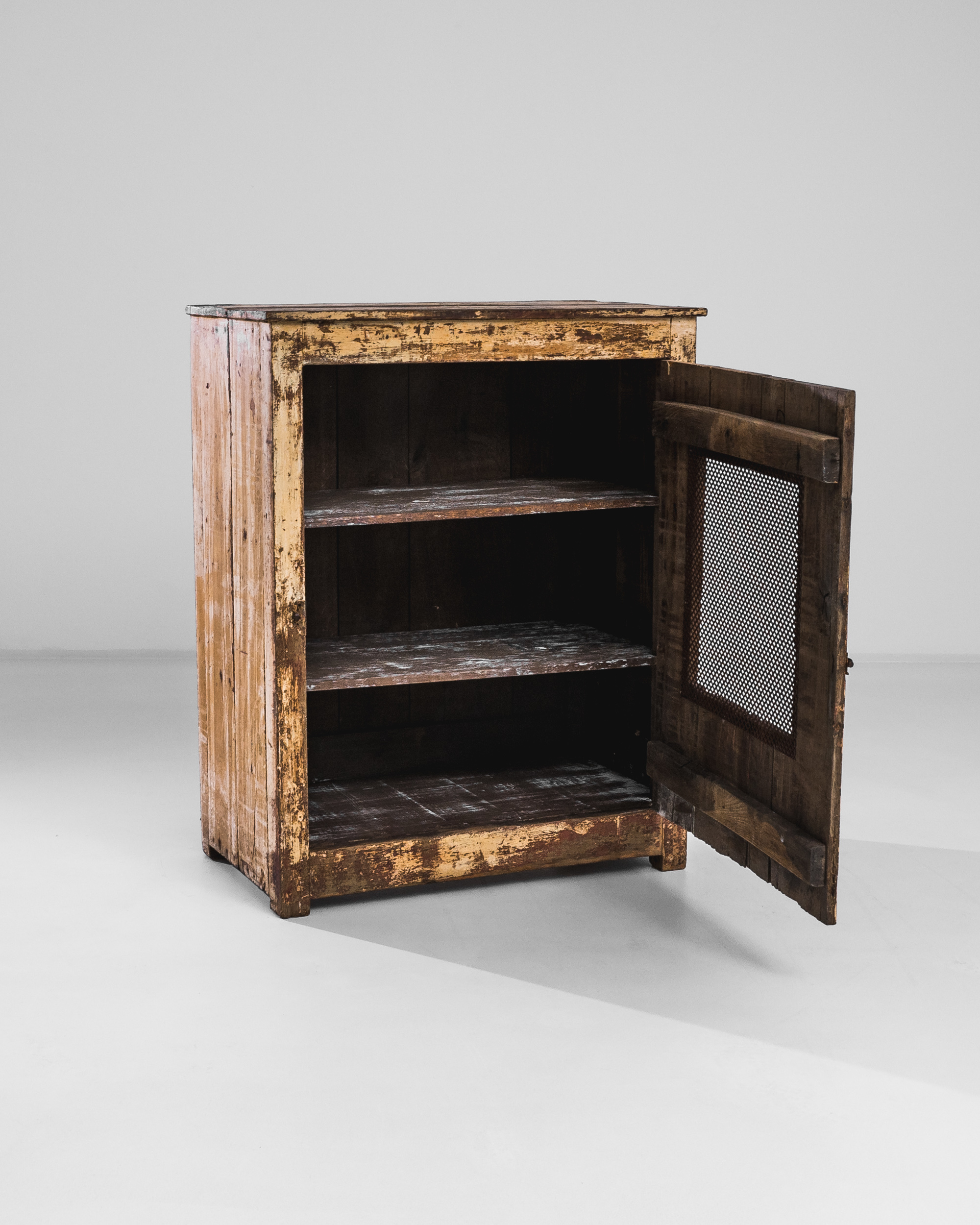 Oak Cabinet With Wire Mesh Doors
