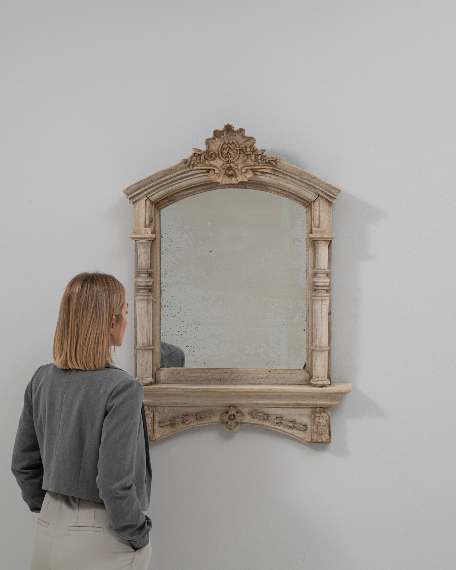 Louis XVI Carved Oak Mirror With Shelf