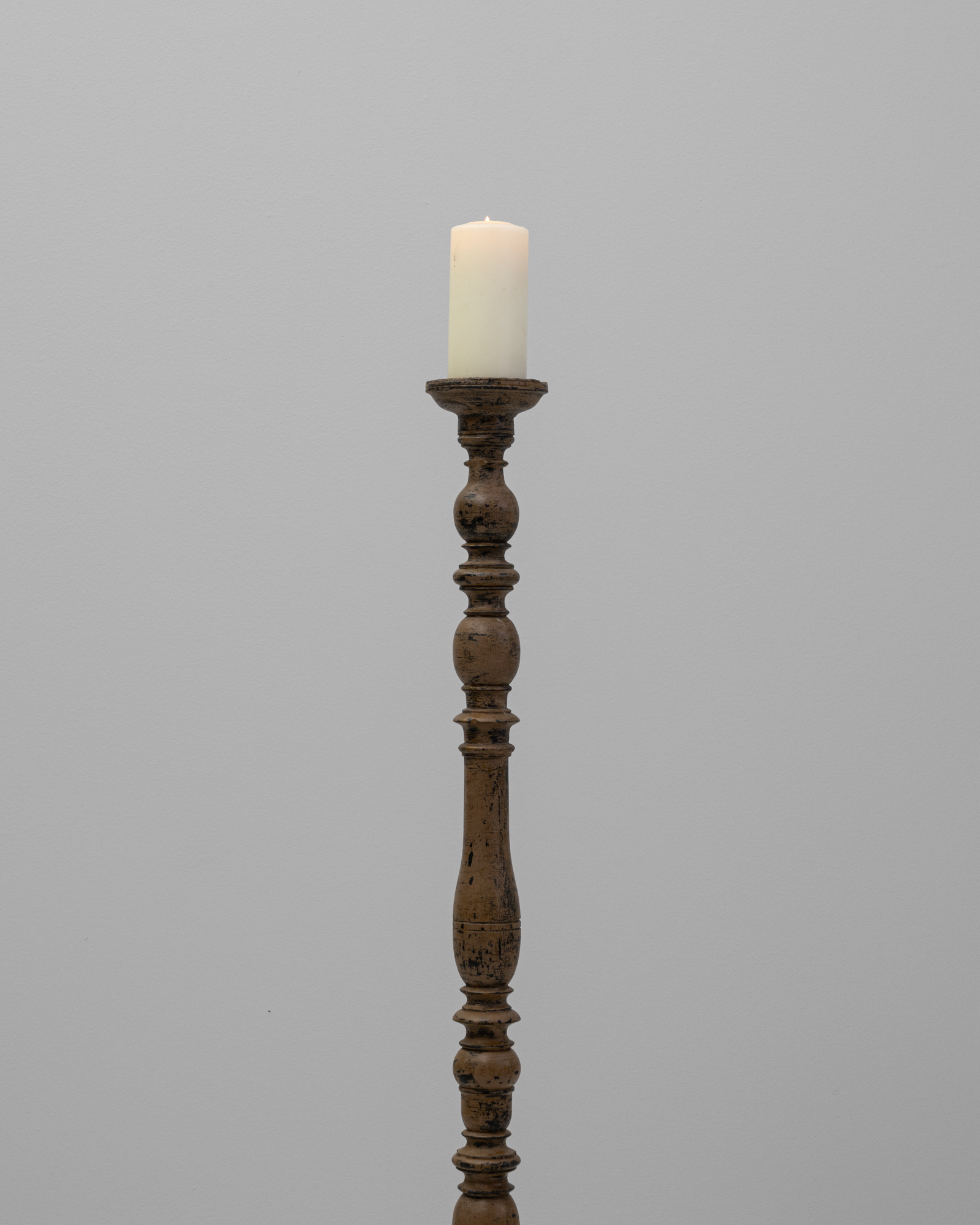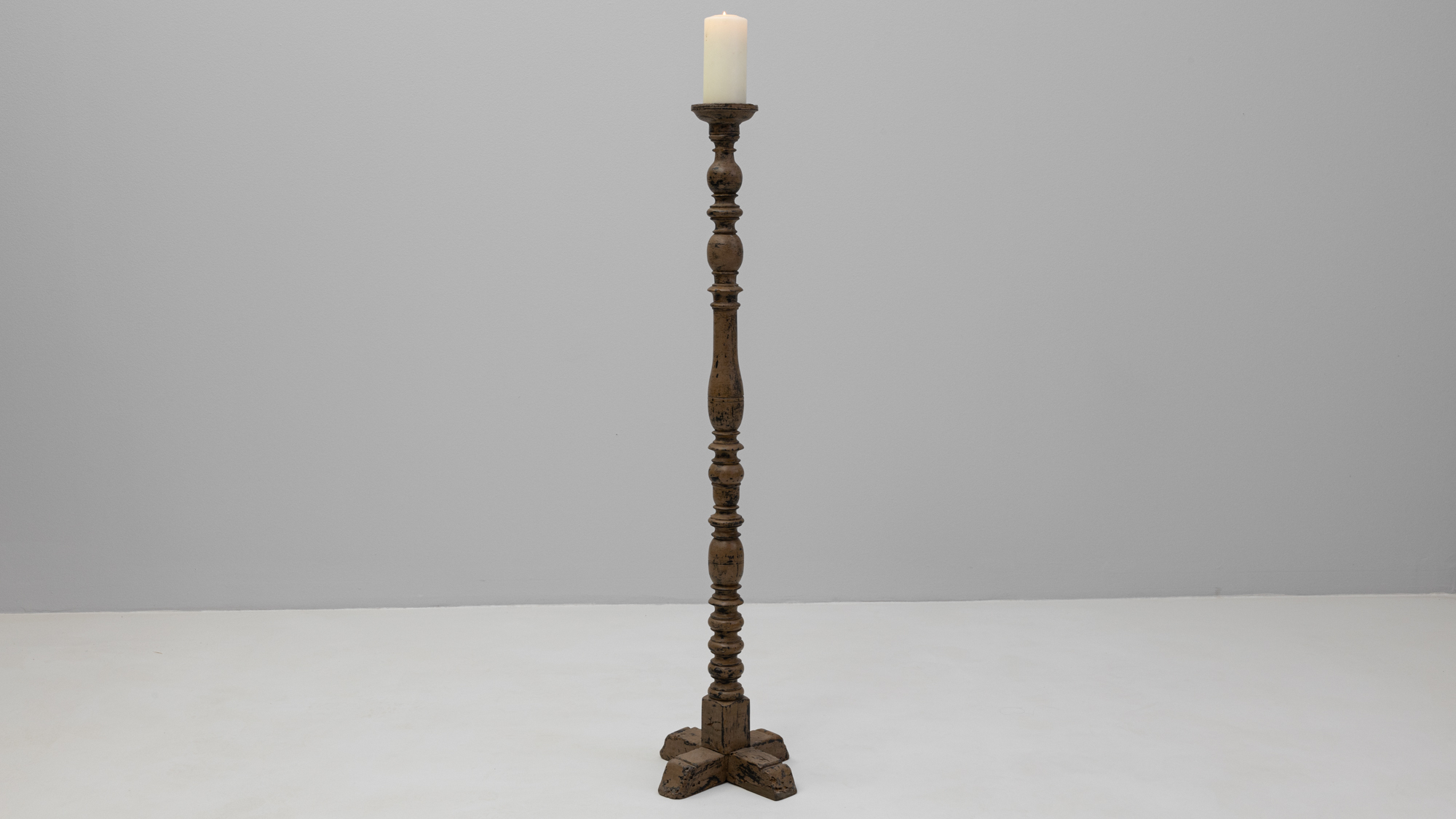 Wood White Patinated Floor Candlestick