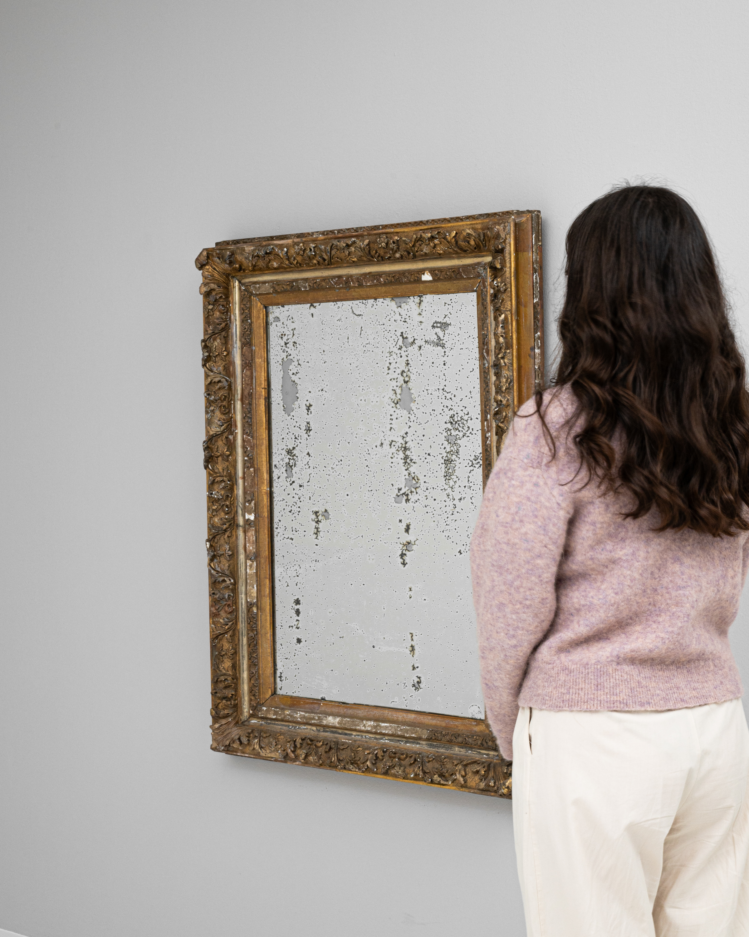 Wood White Patinated Mirror