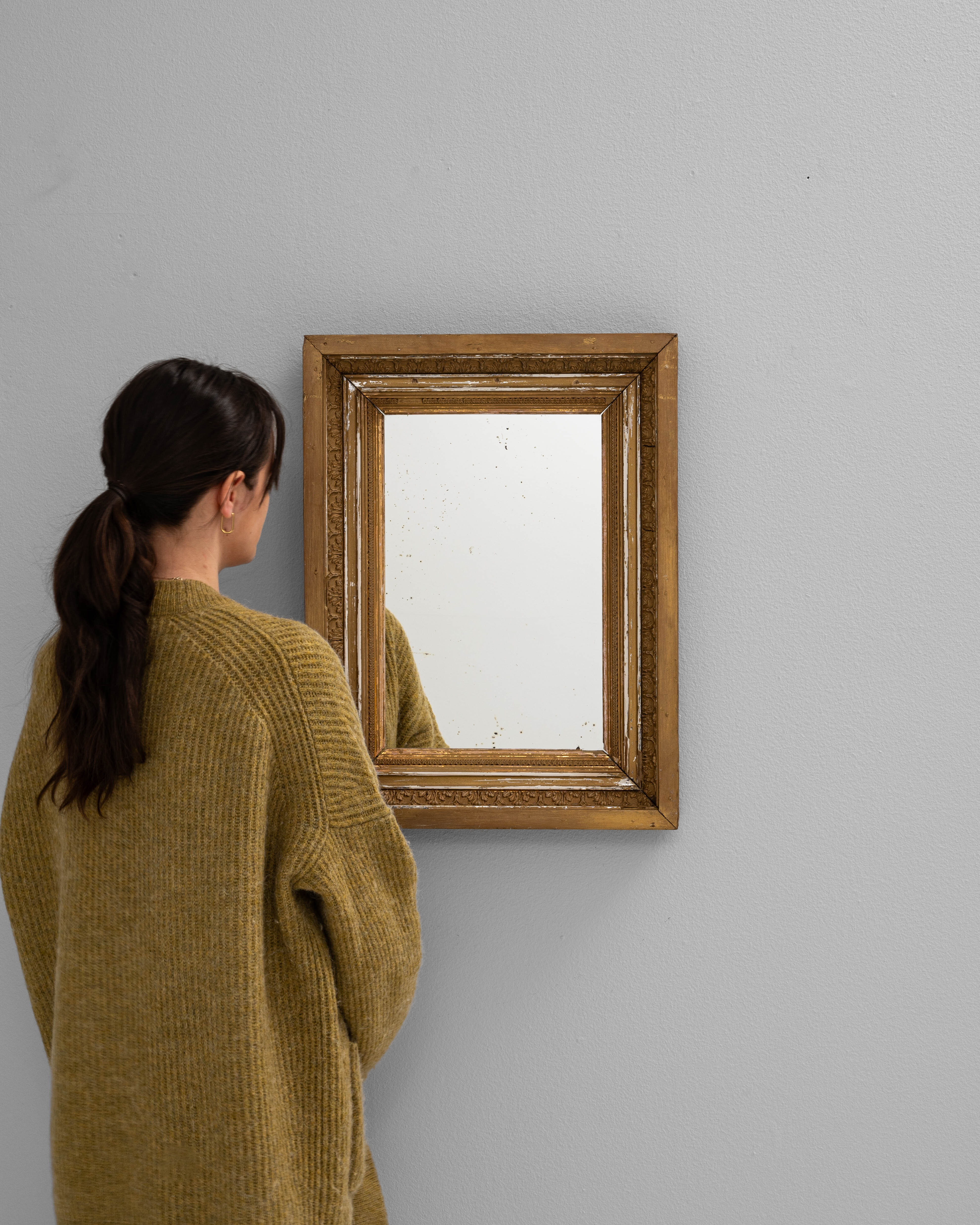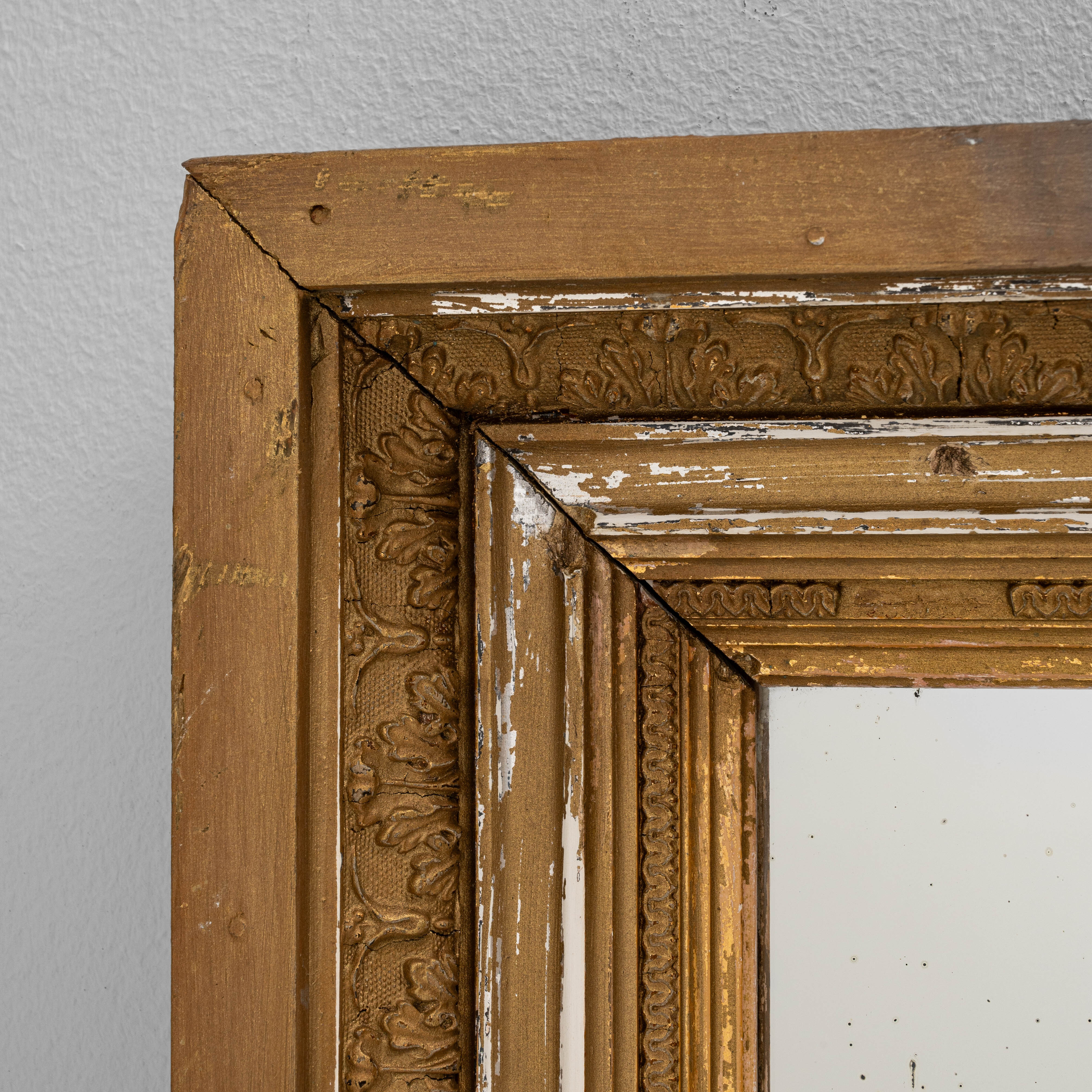 Wood White Wall Patinated Mirror