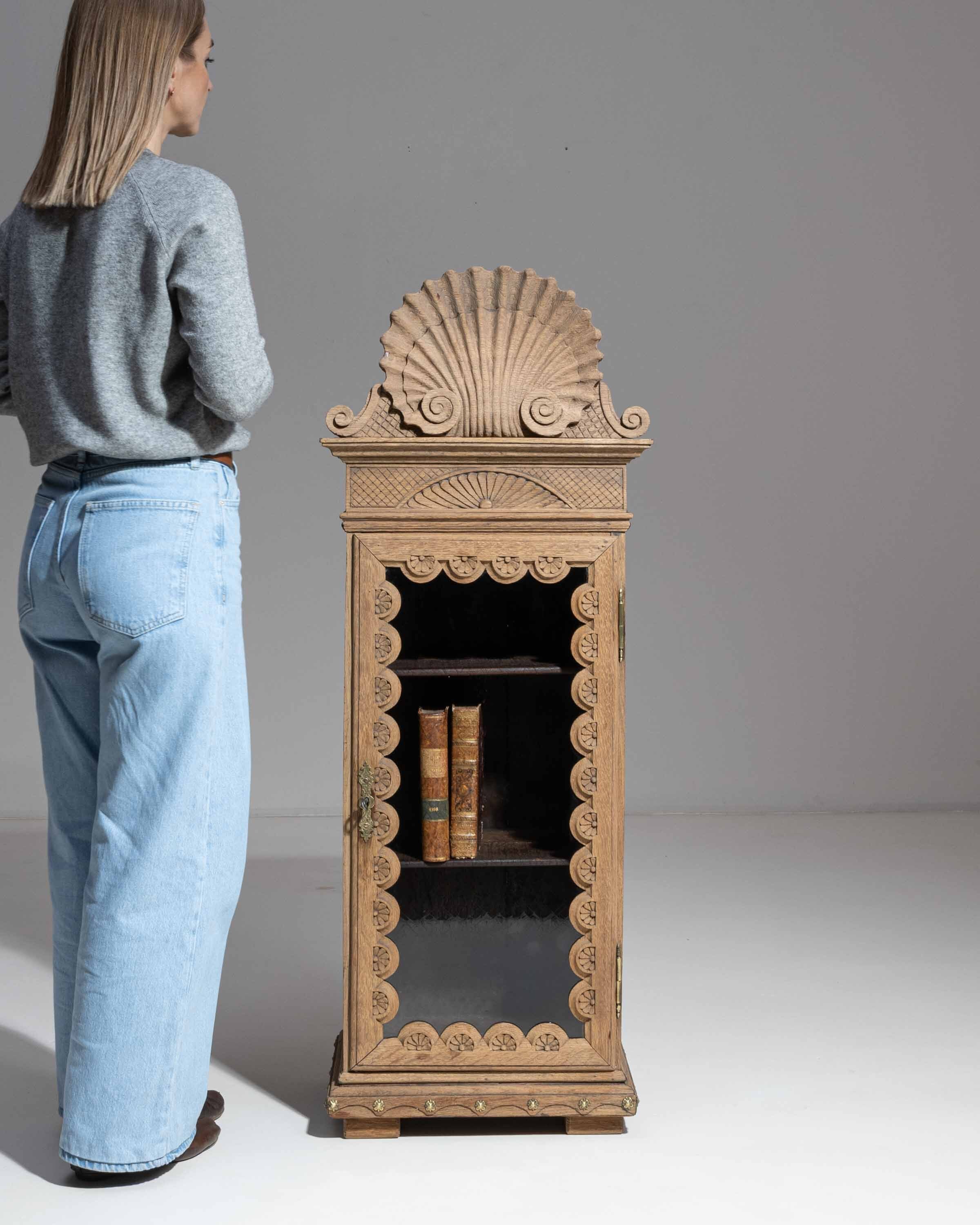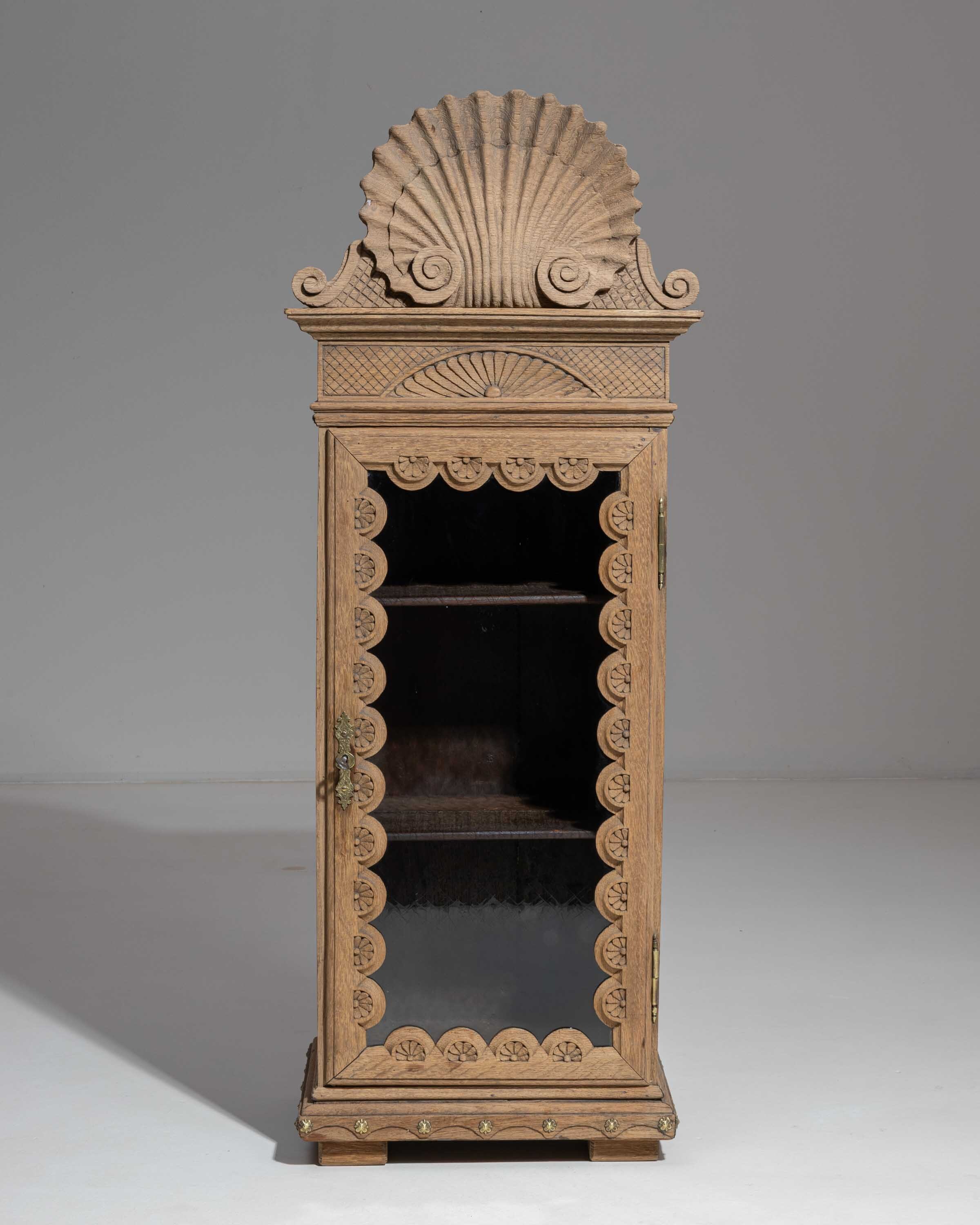 Rare Oak Carved Vitrine With Shell Crest