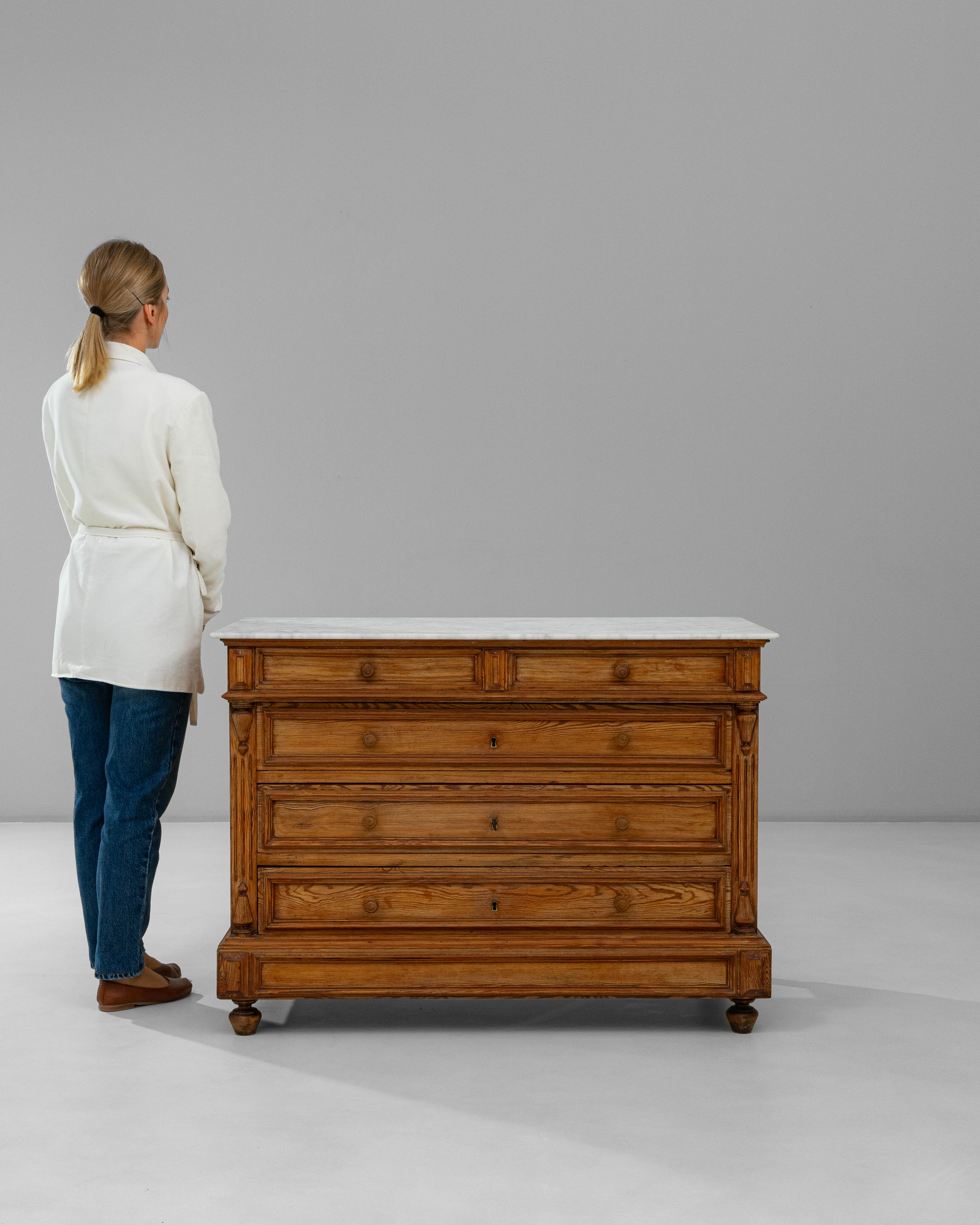 Louis XVI Wooden Chest of Drawers With Marble Top