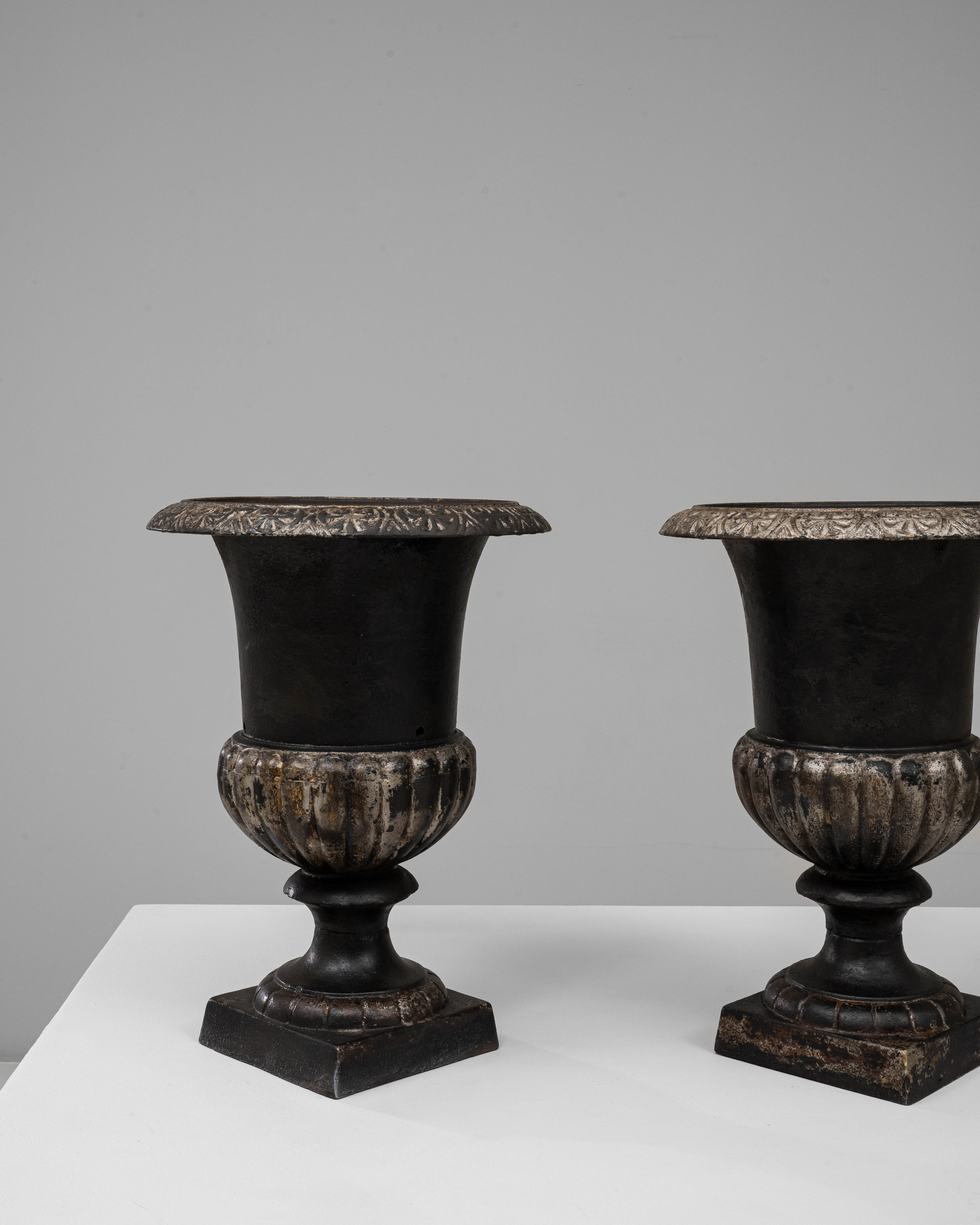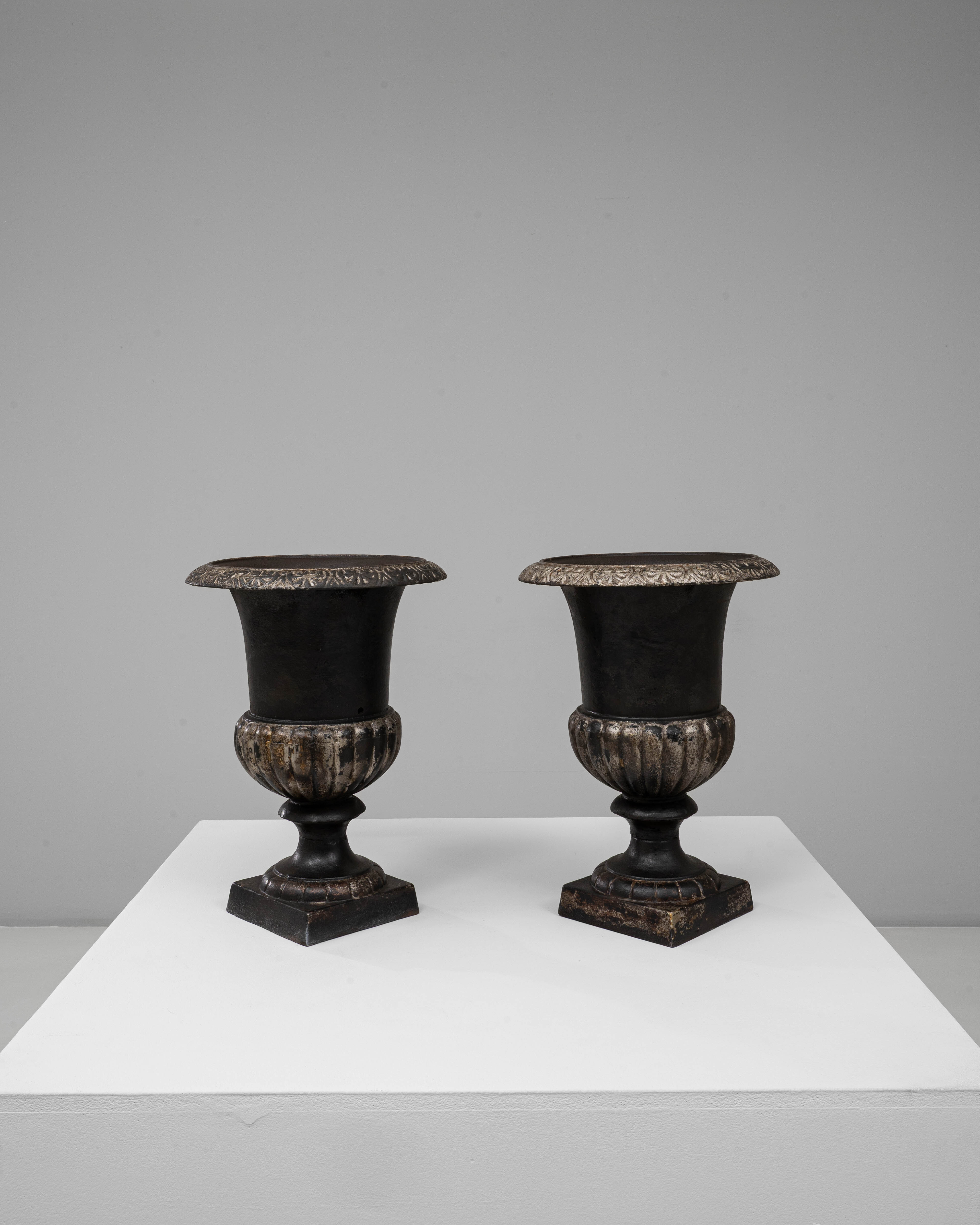 Pair Of Neoclassical Cast Iron Urns On Pedestals