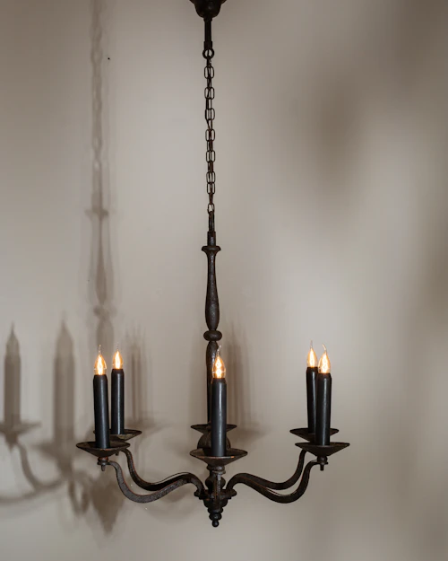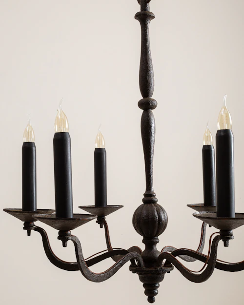 More info About Wrought Iron & Gold-Finished Chandelier With Crystal Accents