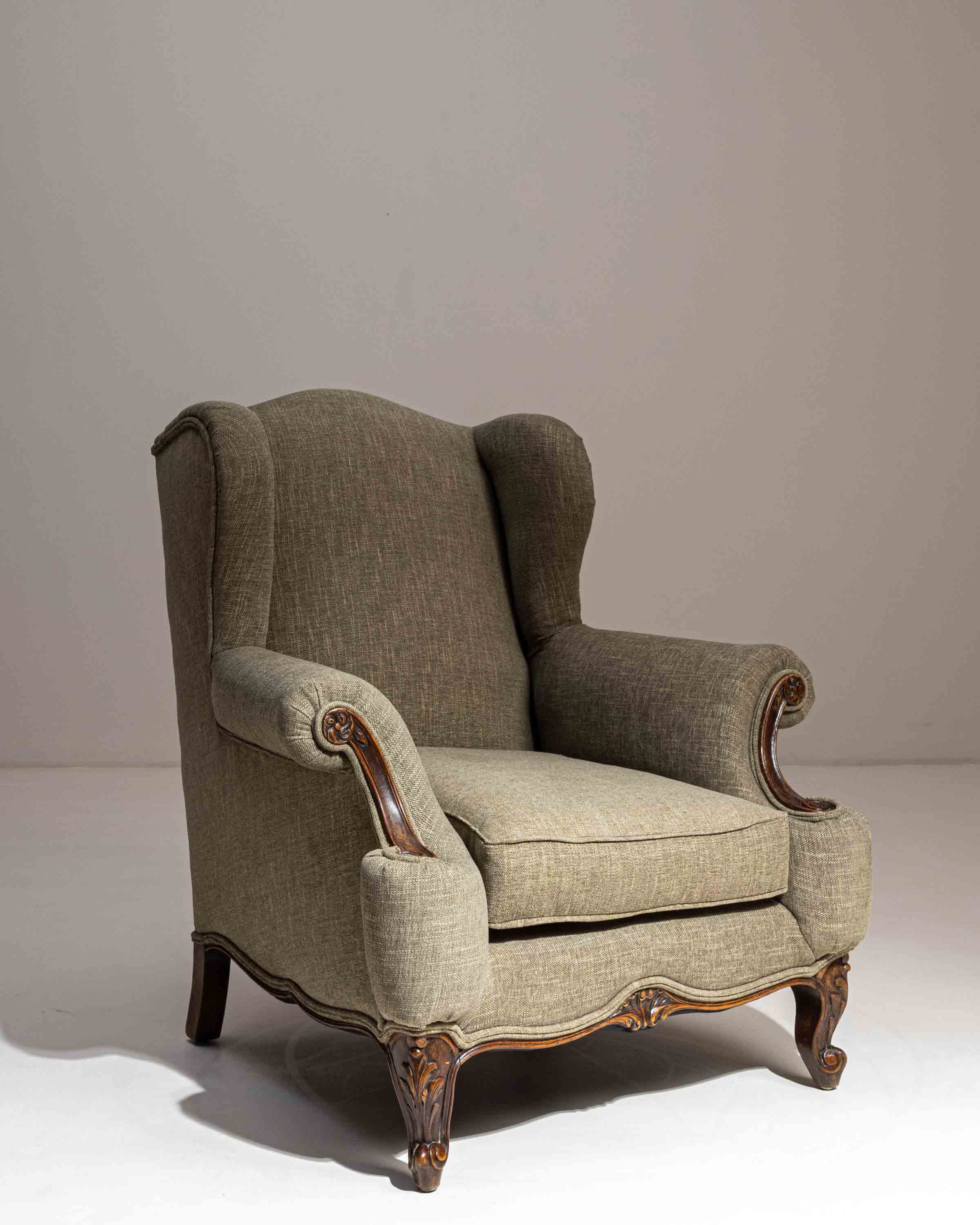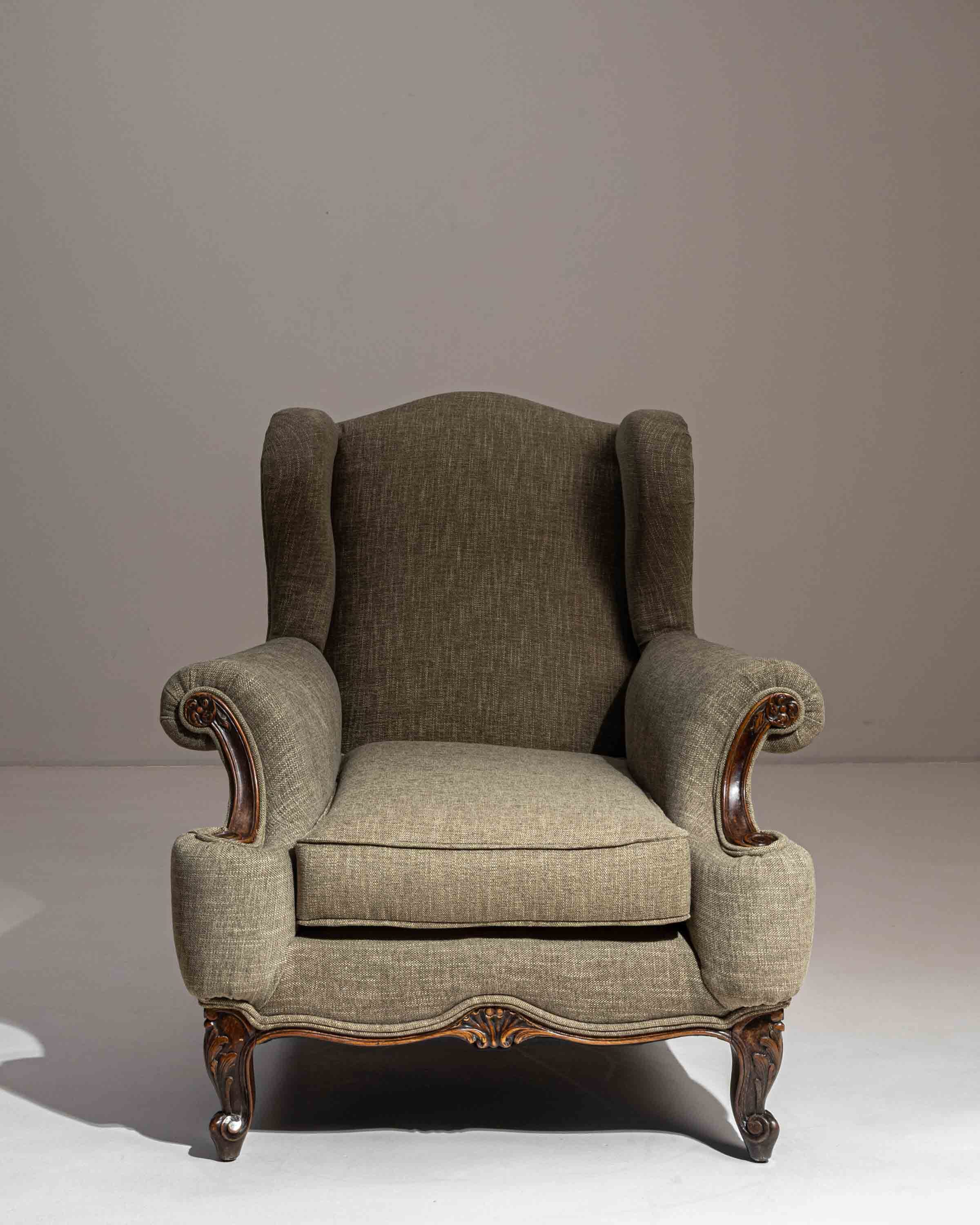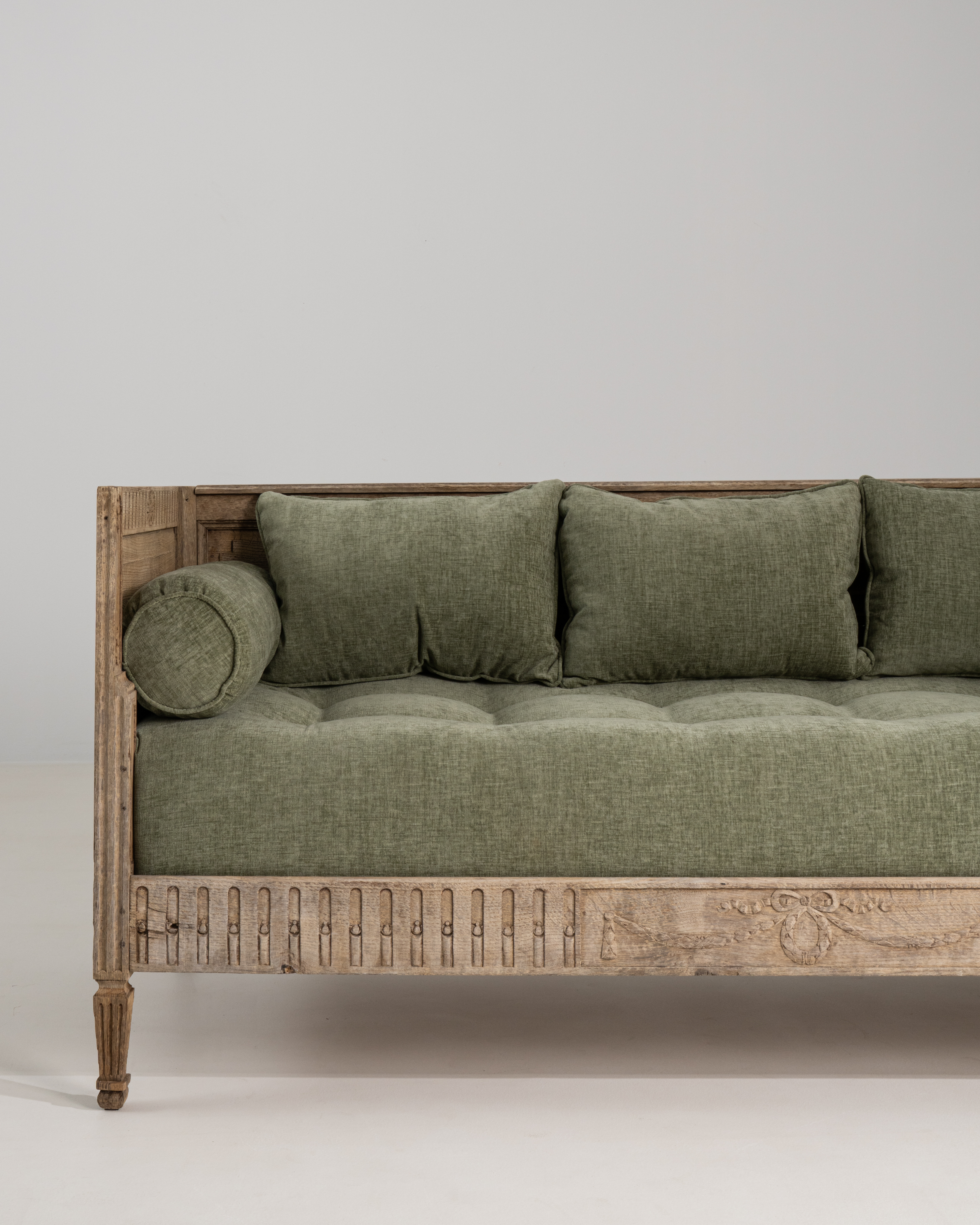 Louis XVI Carved Oak Daybed With Green Upholstery