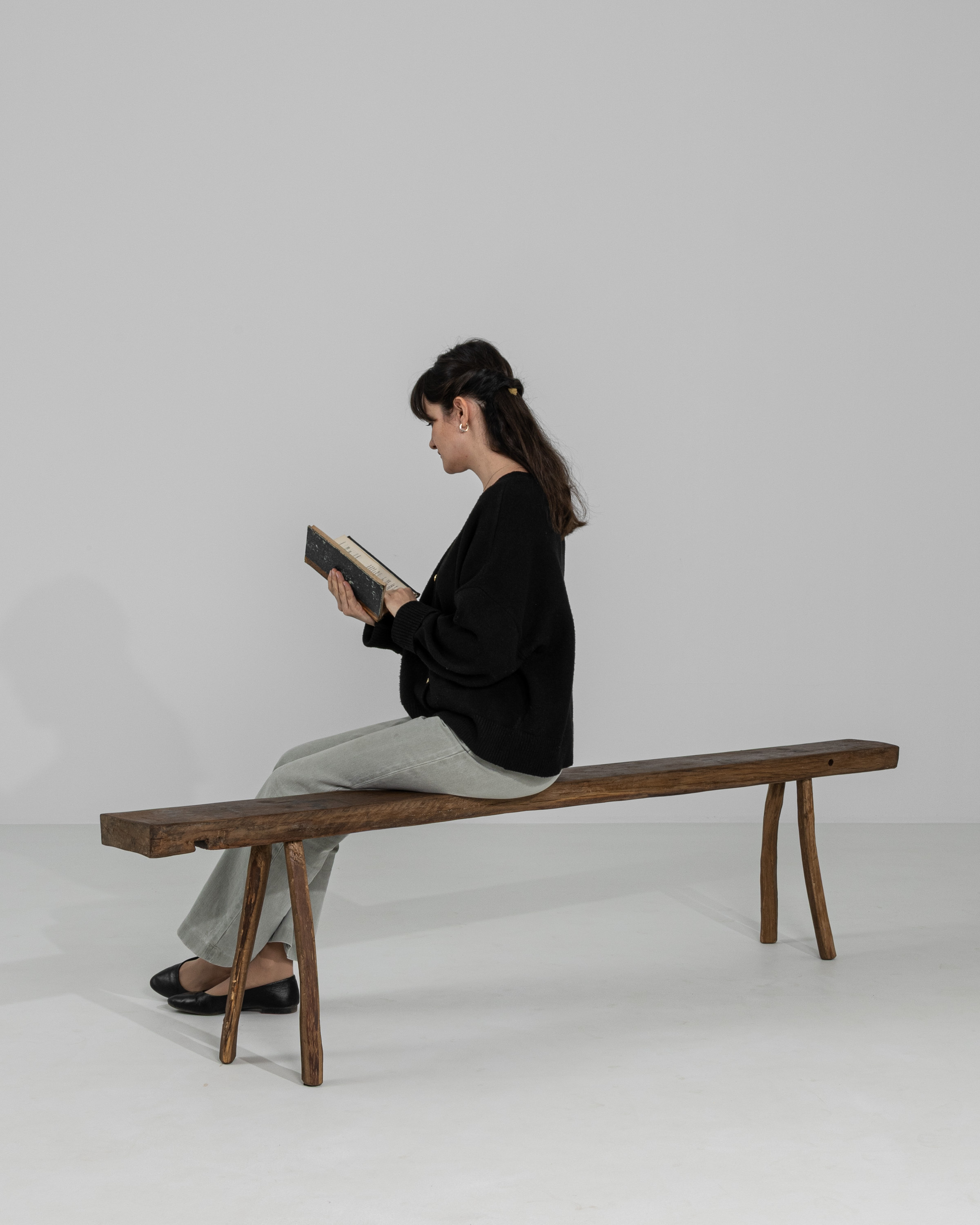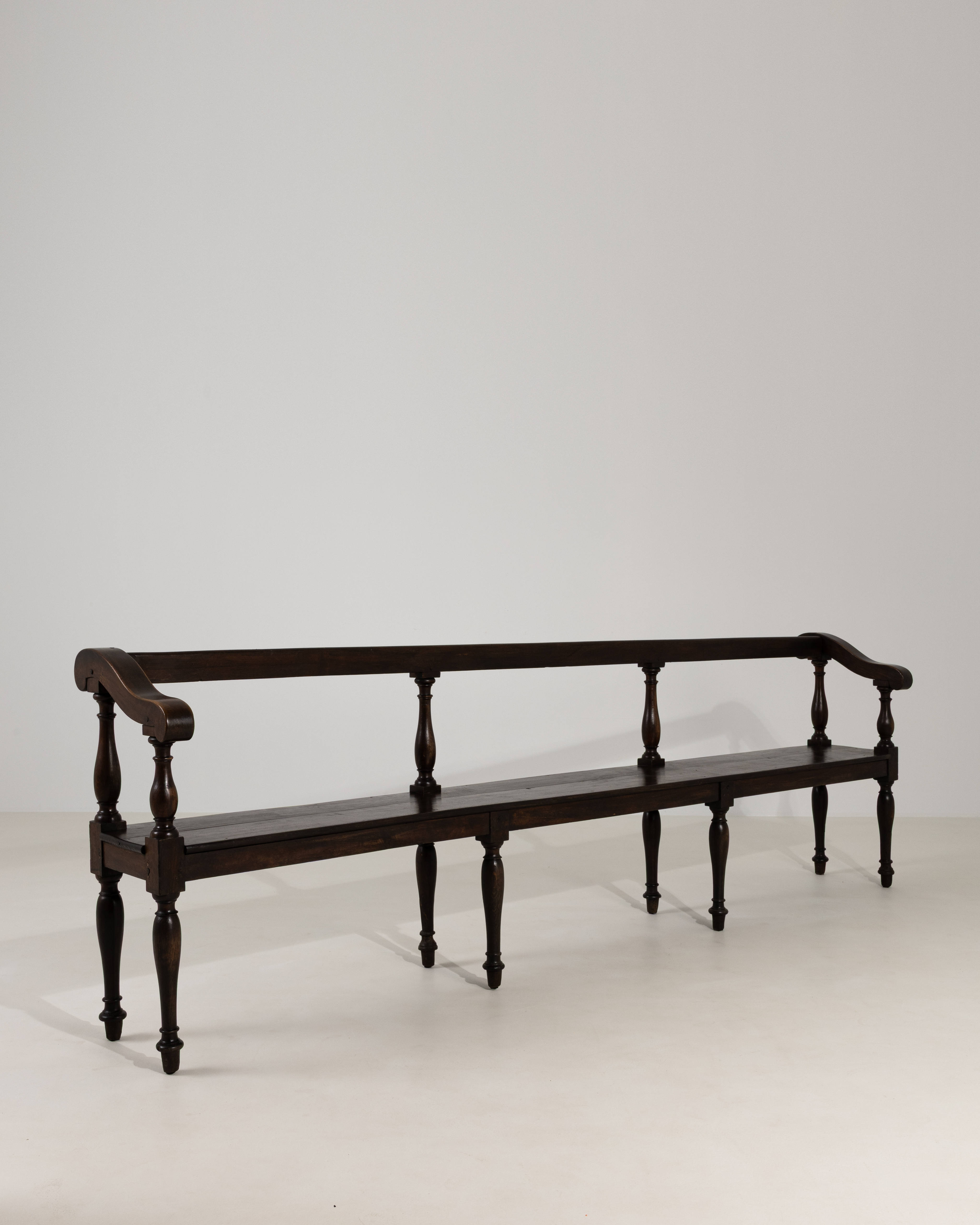 Oak Bench With Turned Legs In Original Patina