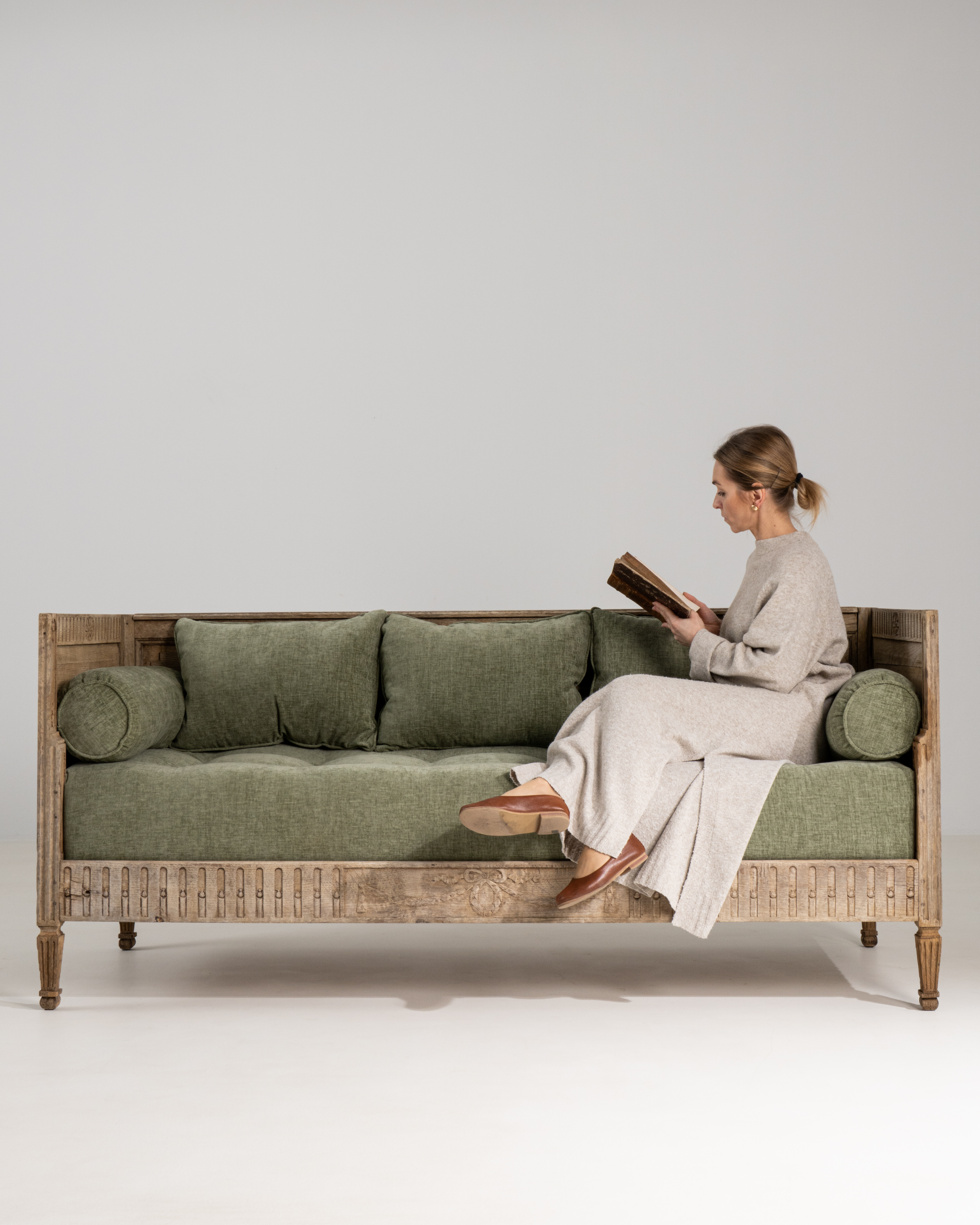 More info About Louis XVI Carved Oak Daybed With Green Upholstery![]()
